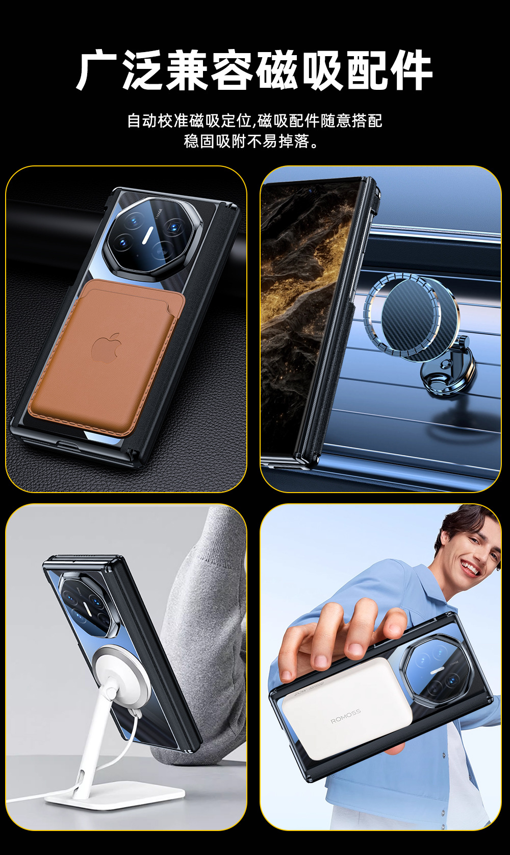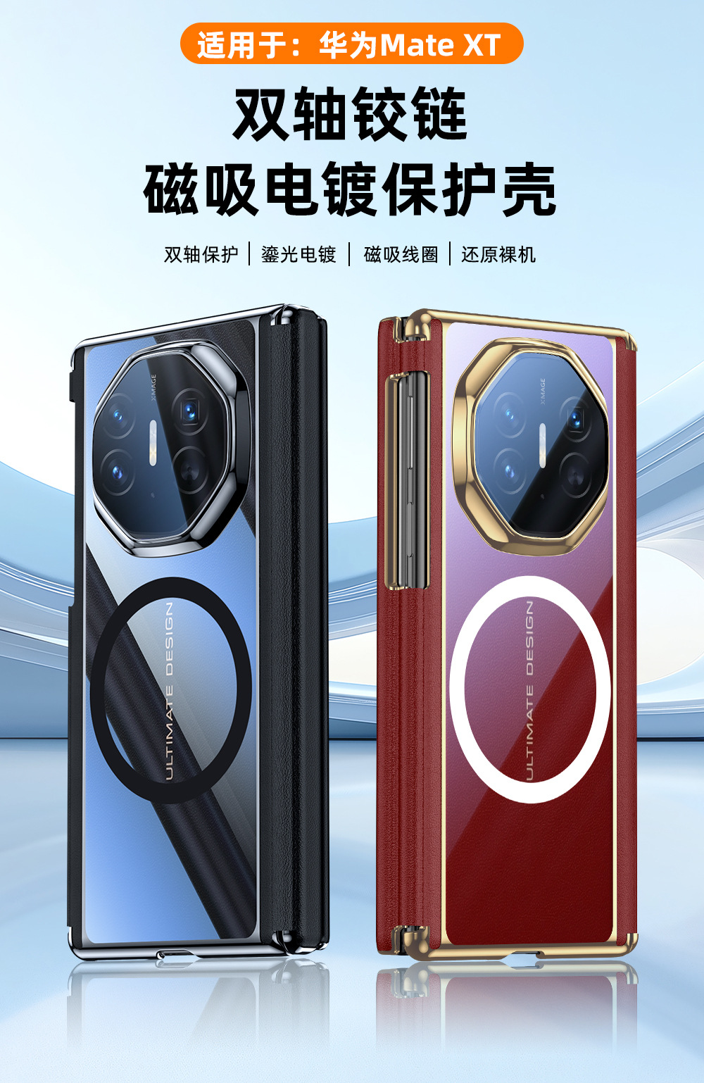 화웨이 MateXT 휴대폰 케이스에 적합, 이중 축 링형 자기 흡착 도금 이중 힌지 보호 XTS 특별 마스터 보호