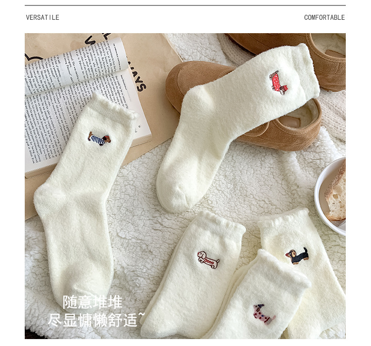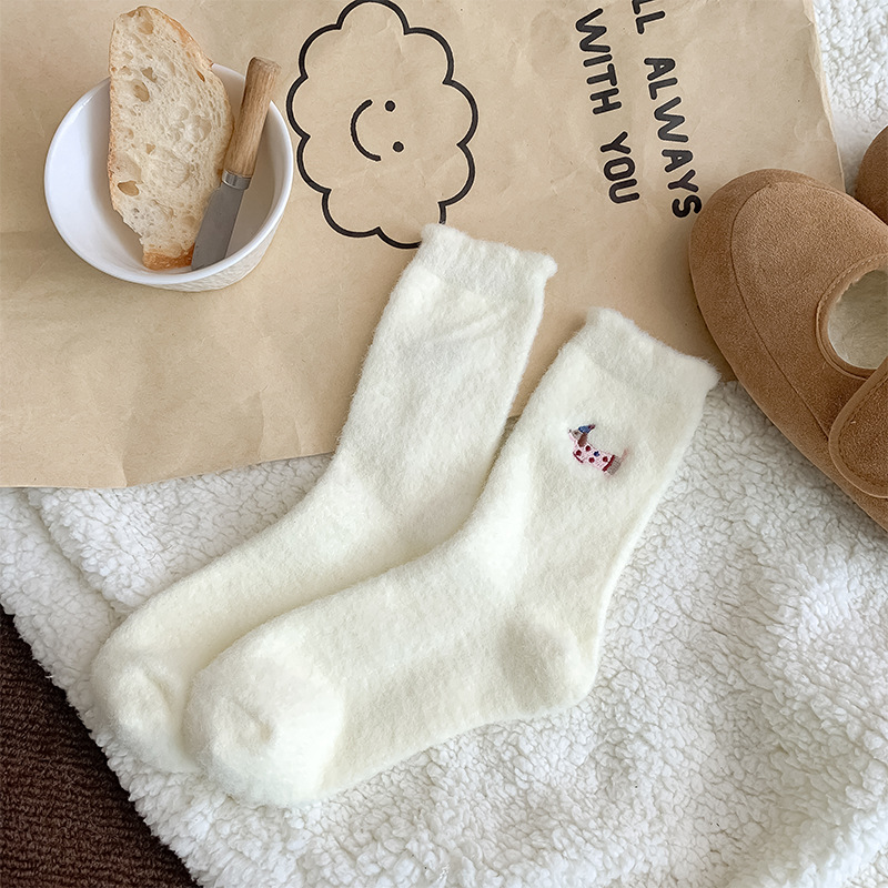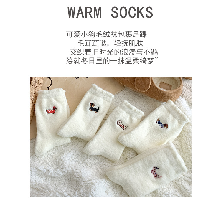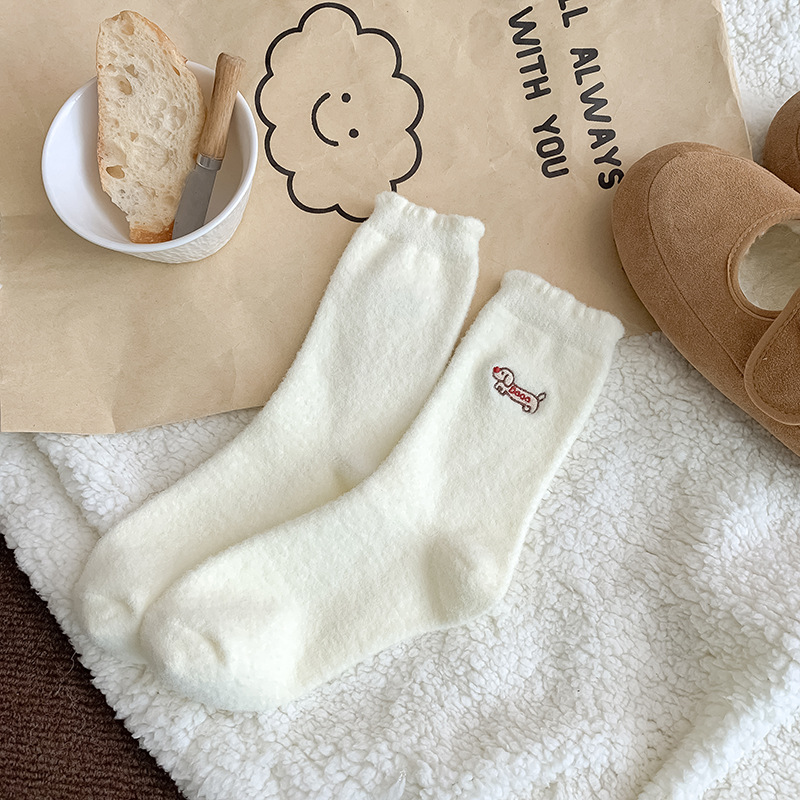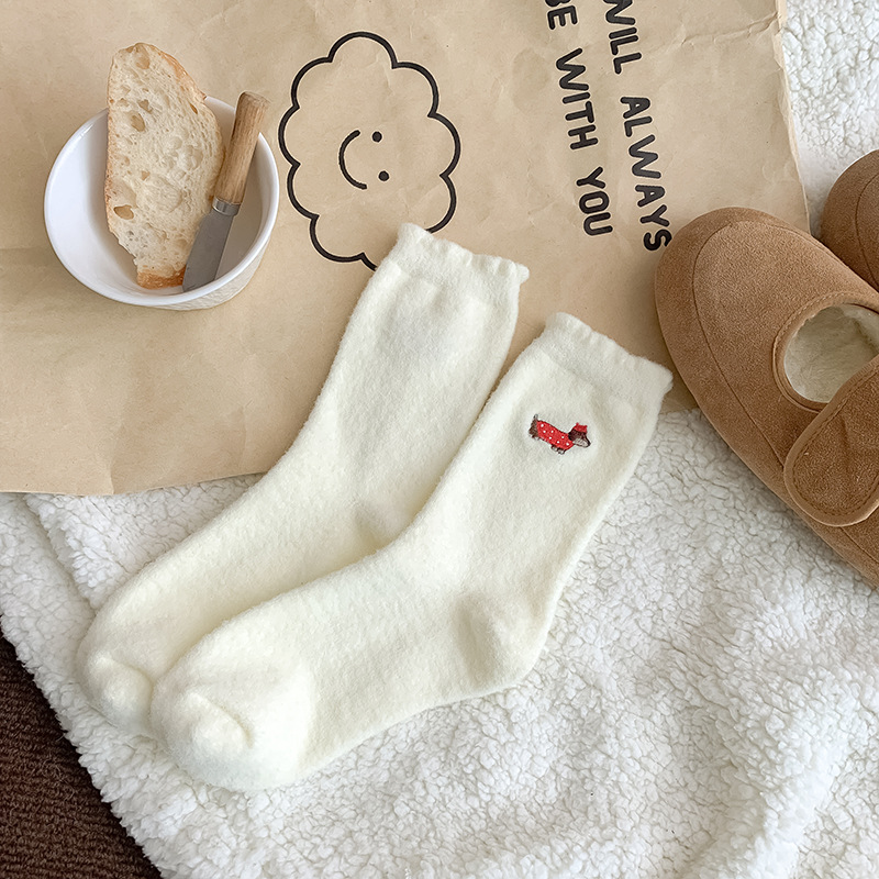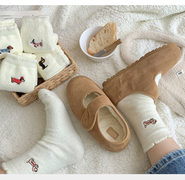 가을과 겨울 두꺼운 양말 어린이 모피 귀여운 강아지 중간 튜브 양말 홈 따뜻한 수면 양말 기모 스택 양말스토어 가기