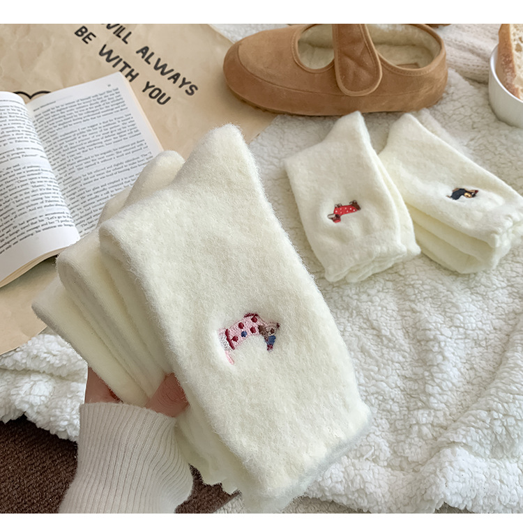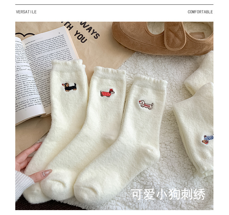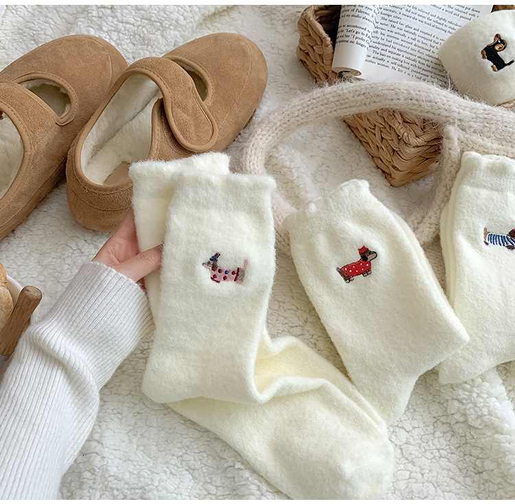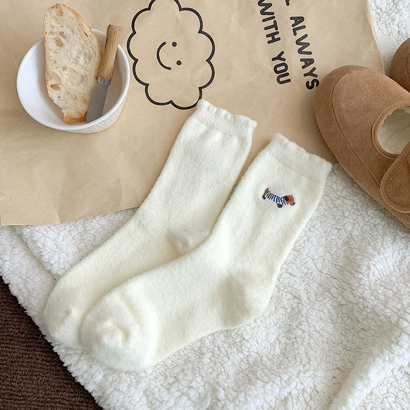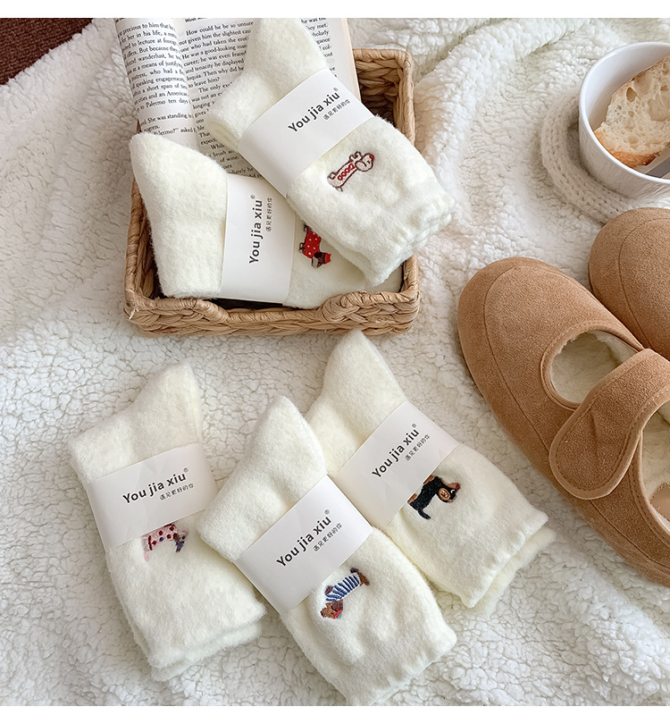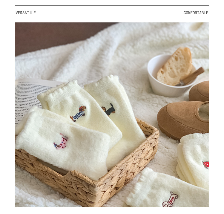 가을과 겨울 두꺼운 양말 어린이 모피 귀여운 강아지 중간 튜브 양말 홈 따뜻한 수면 양말 기모 스택 양말스토어 가기