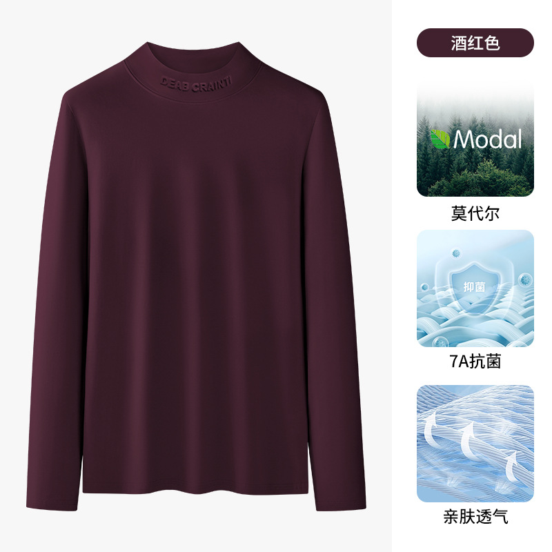 모달 코튼 베이스 레이어 하프 터틀넥 남성용 긴팔 티셔츠 가을 겨울 이너웨어 청년용 보온 데론 중간 칼라 상의