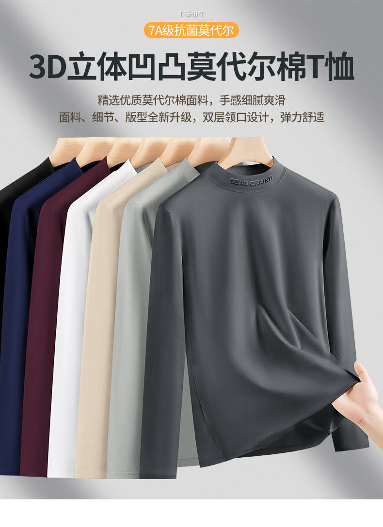 모달 코튼 베이스 레이어 하프 터틀넥 남성용 긴팔 티셔츠 가을 겨울 이너웨어 청년용 보온 데론 중간 칼라 상의스토어 가기