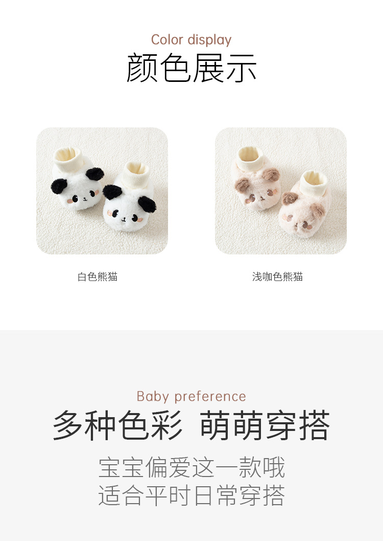 가을 겨울 기모 아기 신발 두꺼운 따뜻한 하이 튜브 작은 팬더 발 커버 귀여운 남성과 여성의 아기 미끄럼 방지 양말 신발