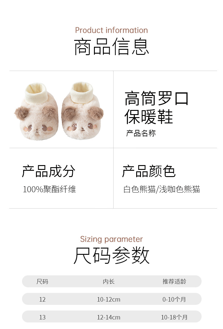 가을 겨울 기모 아기 신발 두꺼운 따뜻한 하이 튜브 작은 팬더 발 커버 귀여운 남성과 여성의 아기 미끄럼 방지 양말 신발스토어 가기