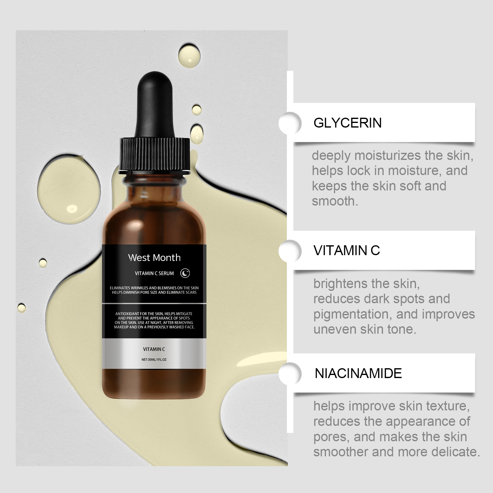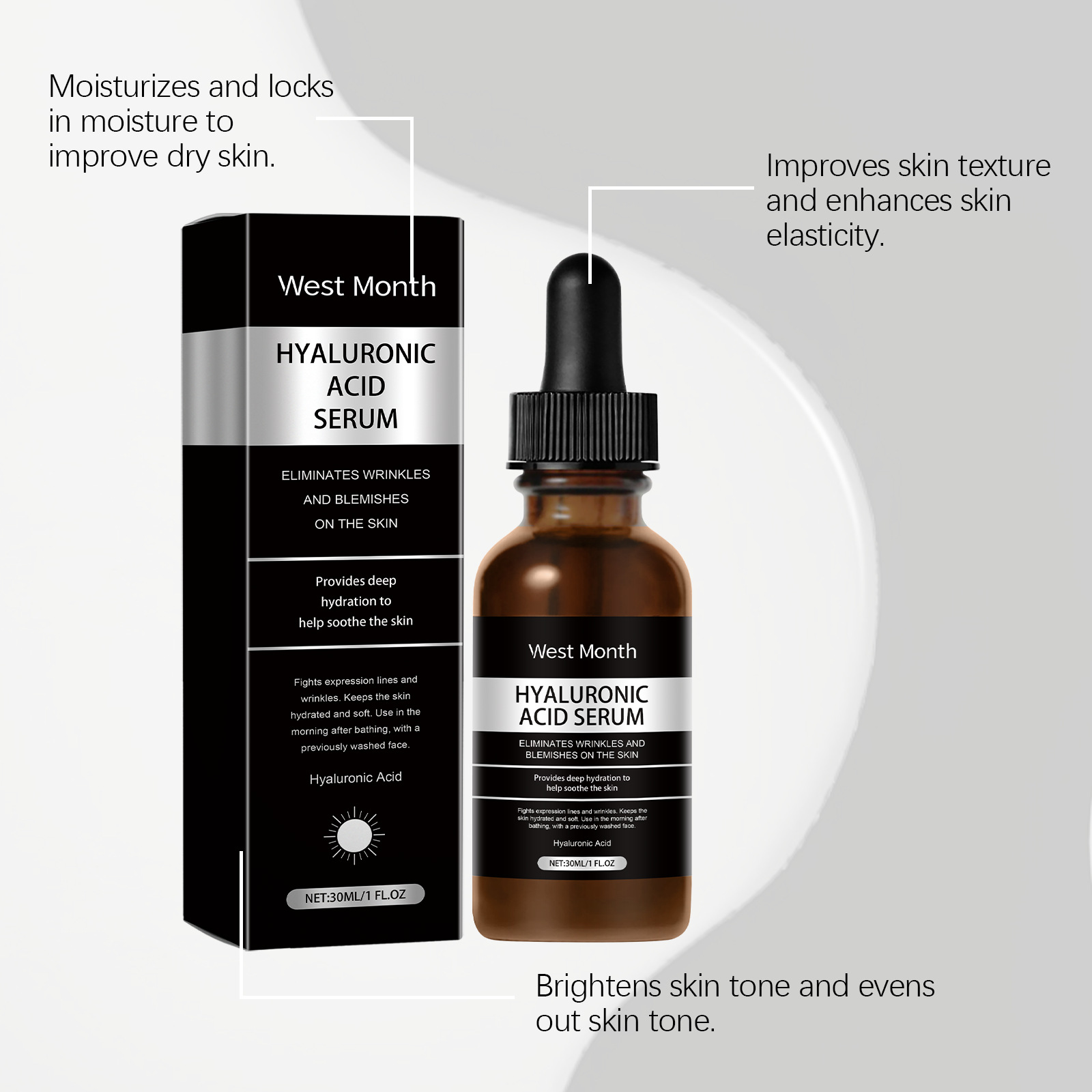 서쪽 달 얼굴 에센스 시리즈 보습 및 관리 얼굴 피부 강화, 부드럽고 섬세하고 밝음