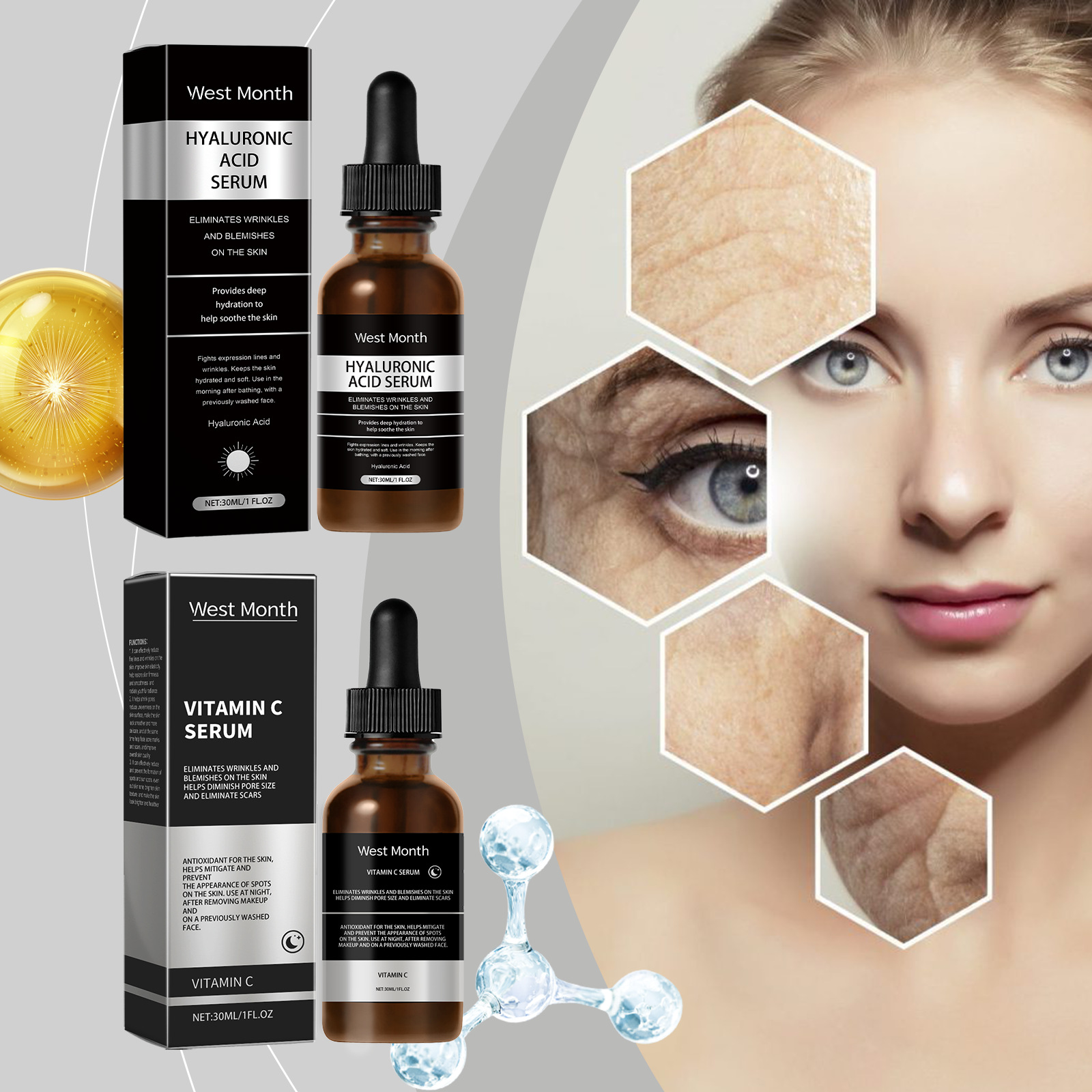서쪽 달 얼굴 에센스 시리즈 보습 및 관리 얼굴 피부 강화, 부드럽고 섬세하고 밝음스토어 가기