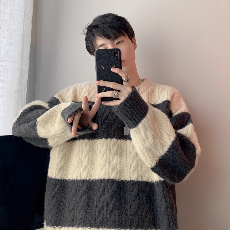 니트 스웨터 남자 가을 겨울 2024 새로운 내베이스 한국 스타일 레이드 백 스타일 청소년 루즈 스웨터 재킷스토어 가기
