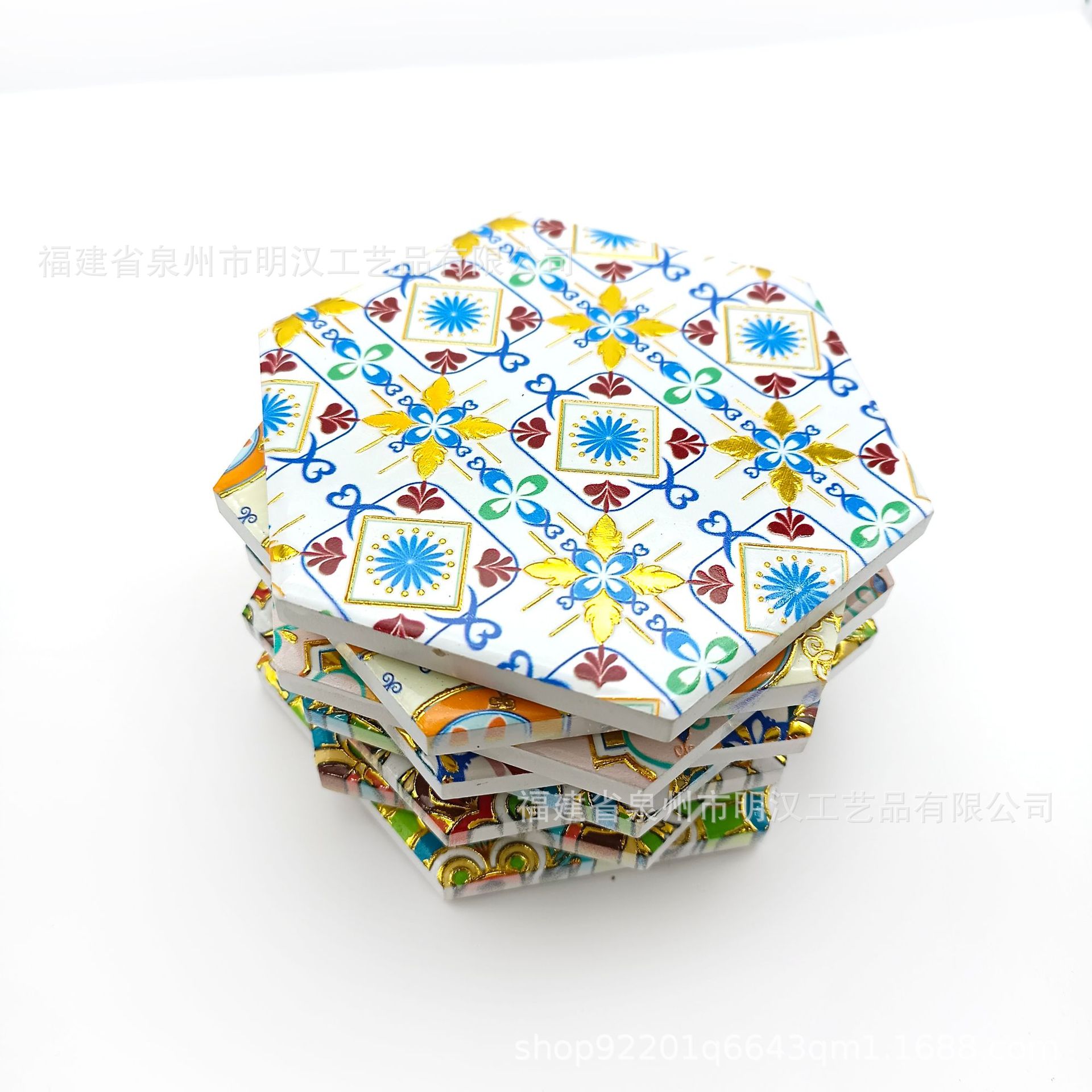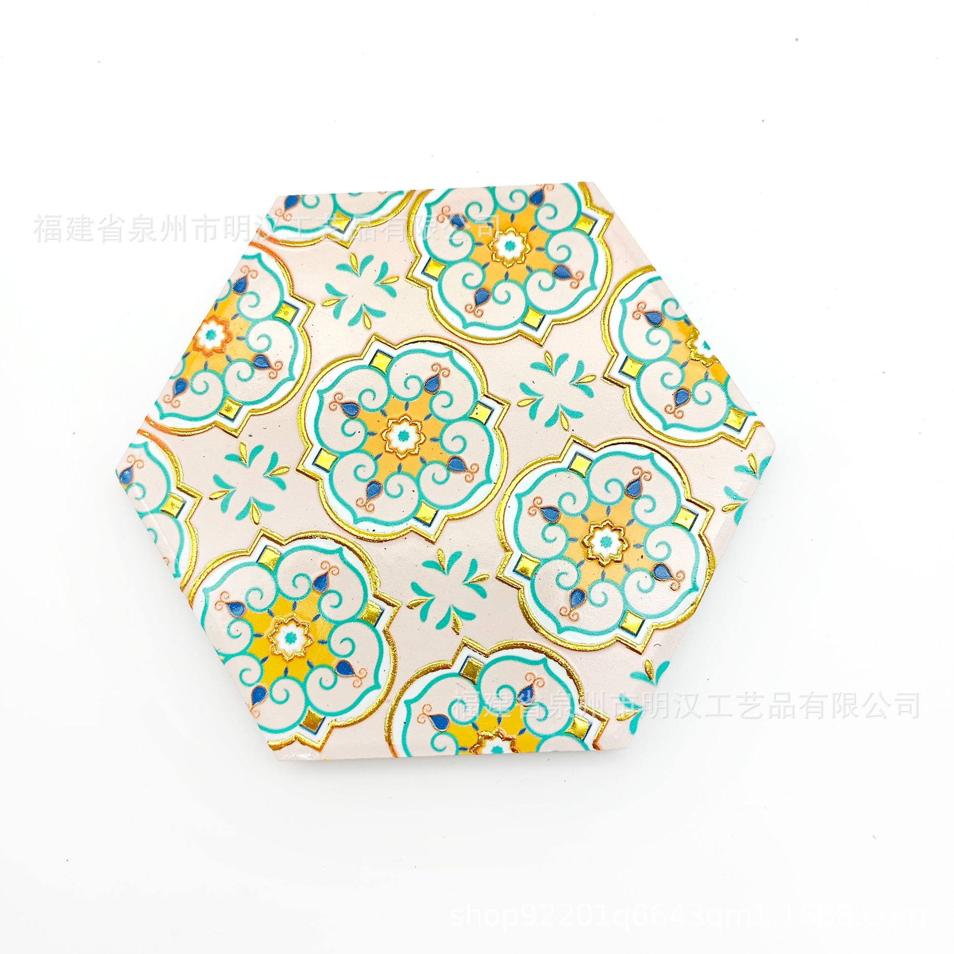 공장 직접 공급 새로운 육각형 패턴 세라믹 코스터 브론징 프로세스 3D 릴리프 효과 창조적 인 세라믹 코스터스토어 가기