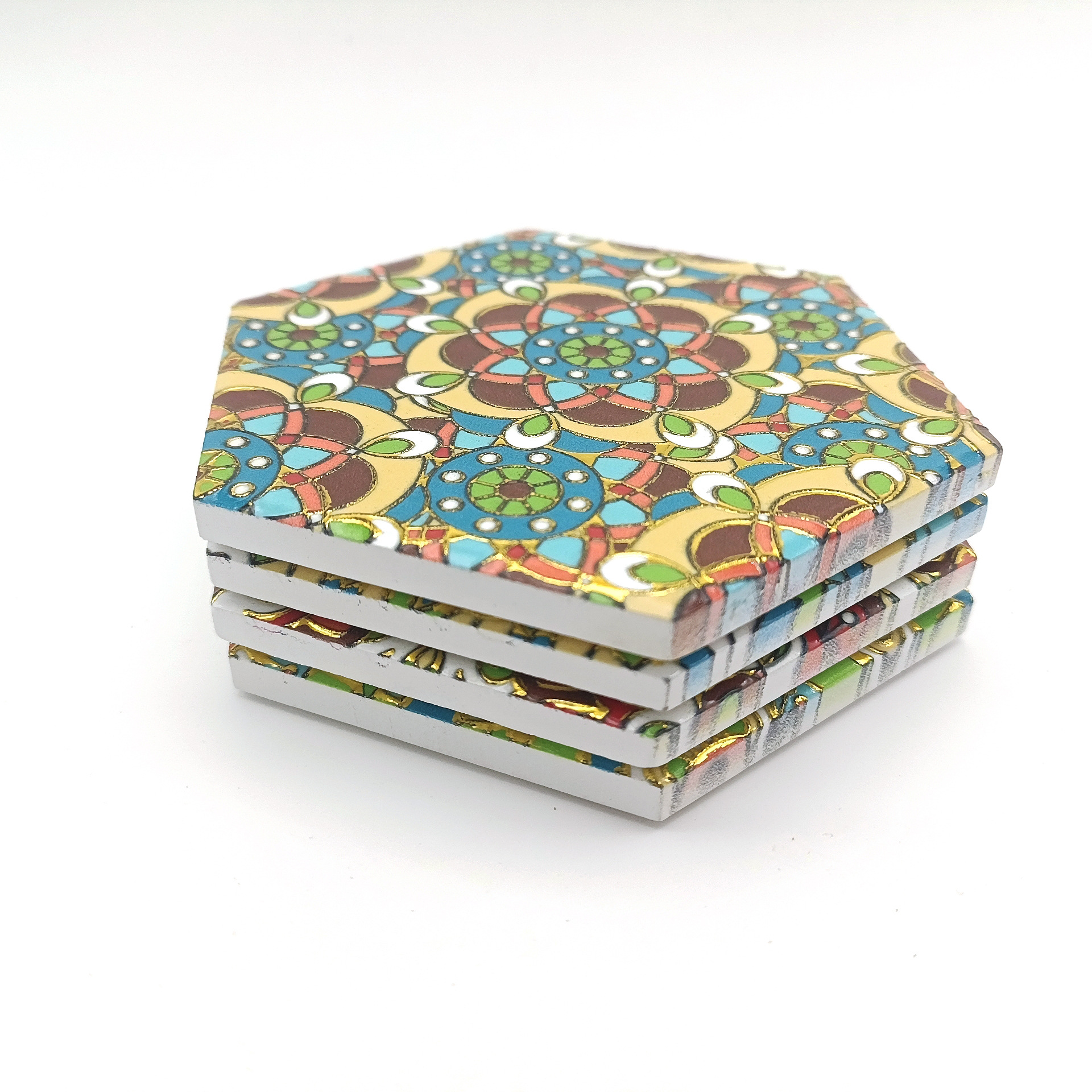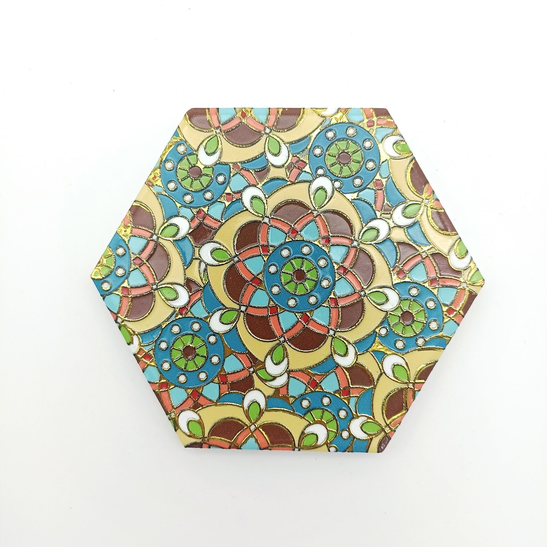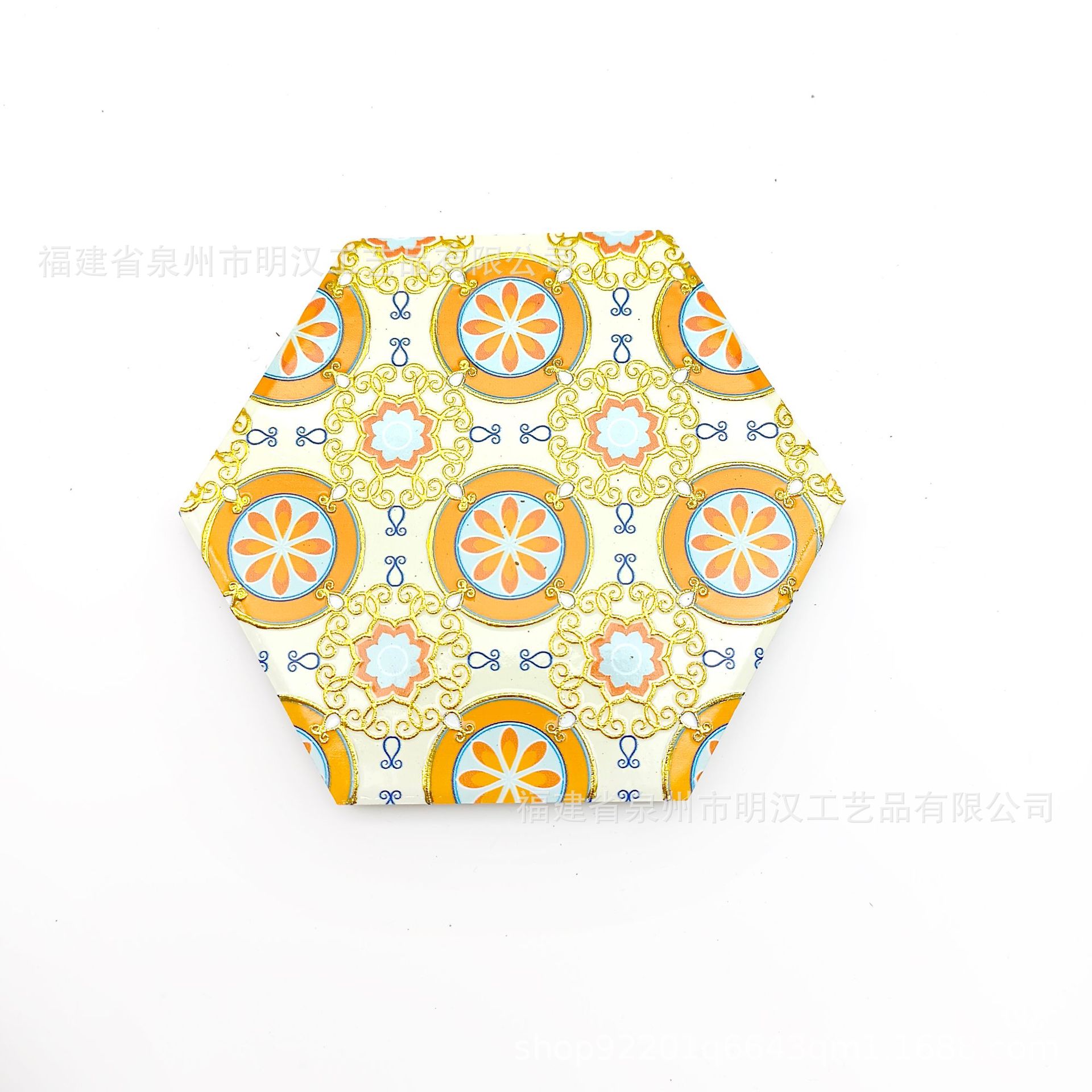 공장 직접 공급 새로운 육각형 패턴 세라믹 코스터 브론징 프로세스 3D 릴리프 효과 창조적 인 세라믹 코스터