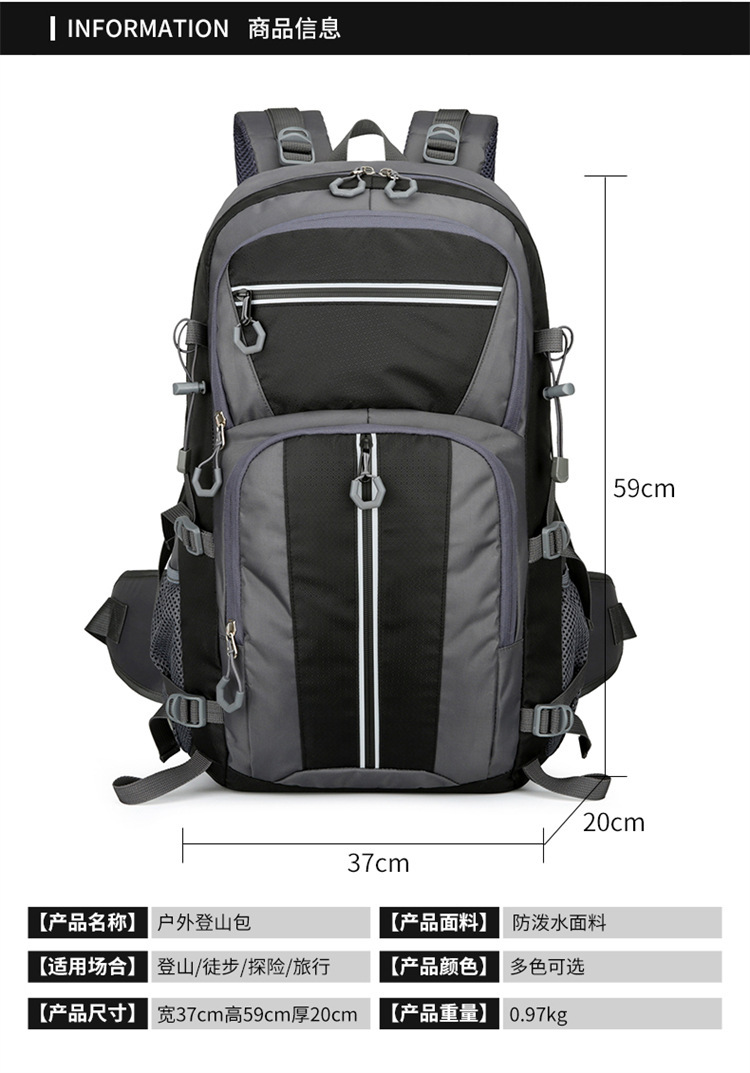 국경 간 등산 가방 방수 야외 배낭 여행 대용량 배낭 다기능 반사 하이킹 가방 도매