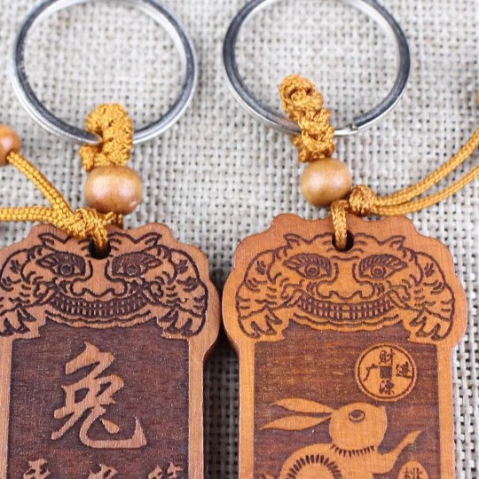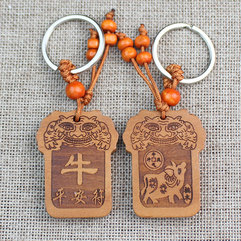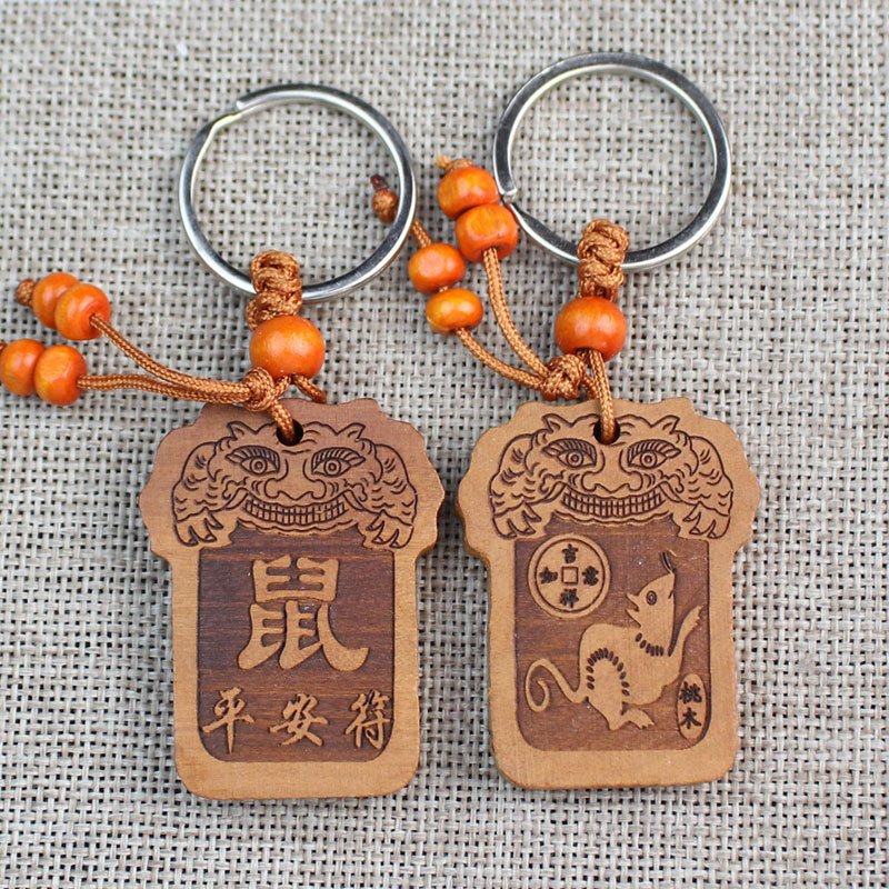 조디악 복숭아 우드 핑 간판 키 체인 5 방향 남성 및 여성 키 체인 교수형 체인 진 쑤언스토어 가기