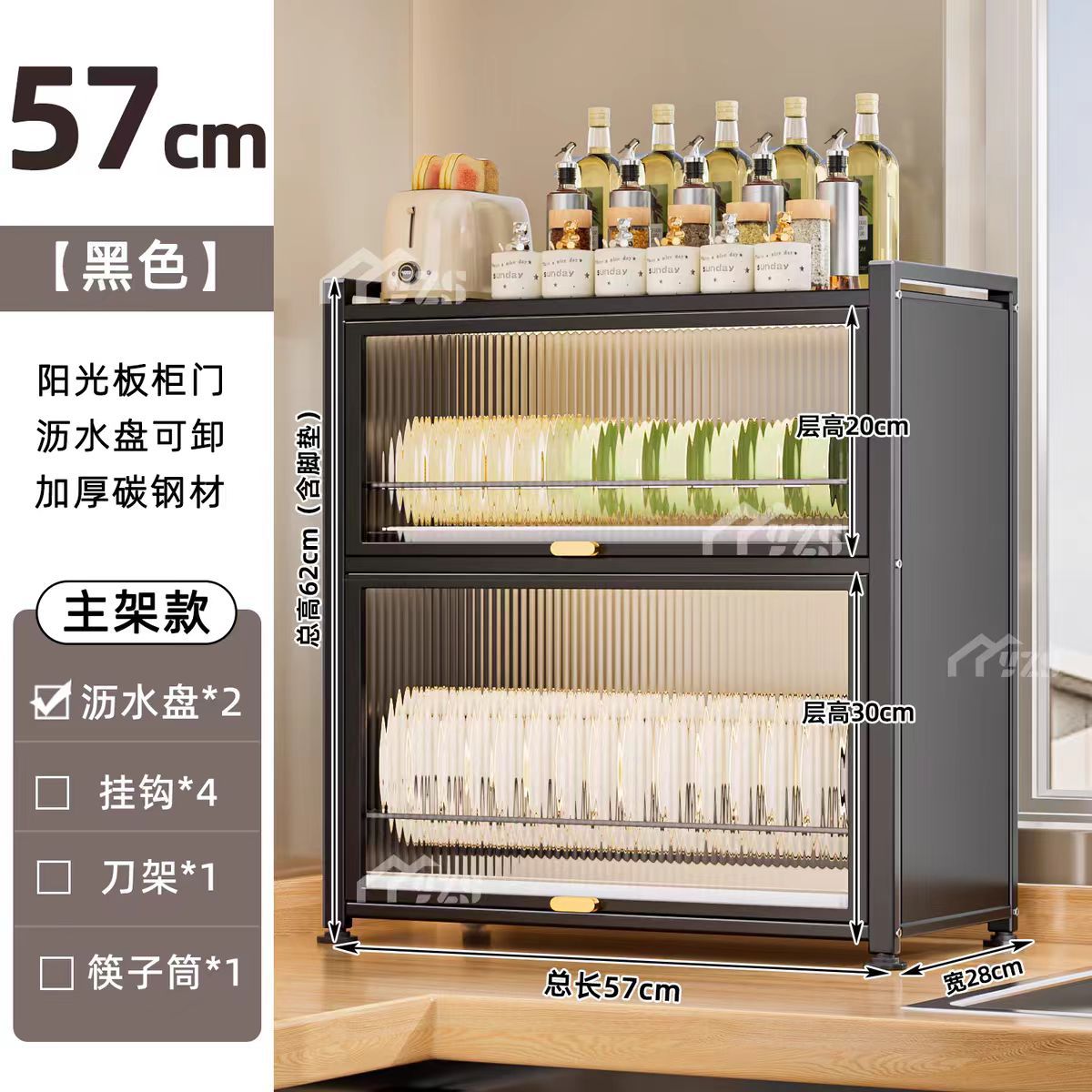 • 57cm [블랙] 접시와 찬장 + 칼꽂이 + 젓가락통 + 프리 이동식 후크*4