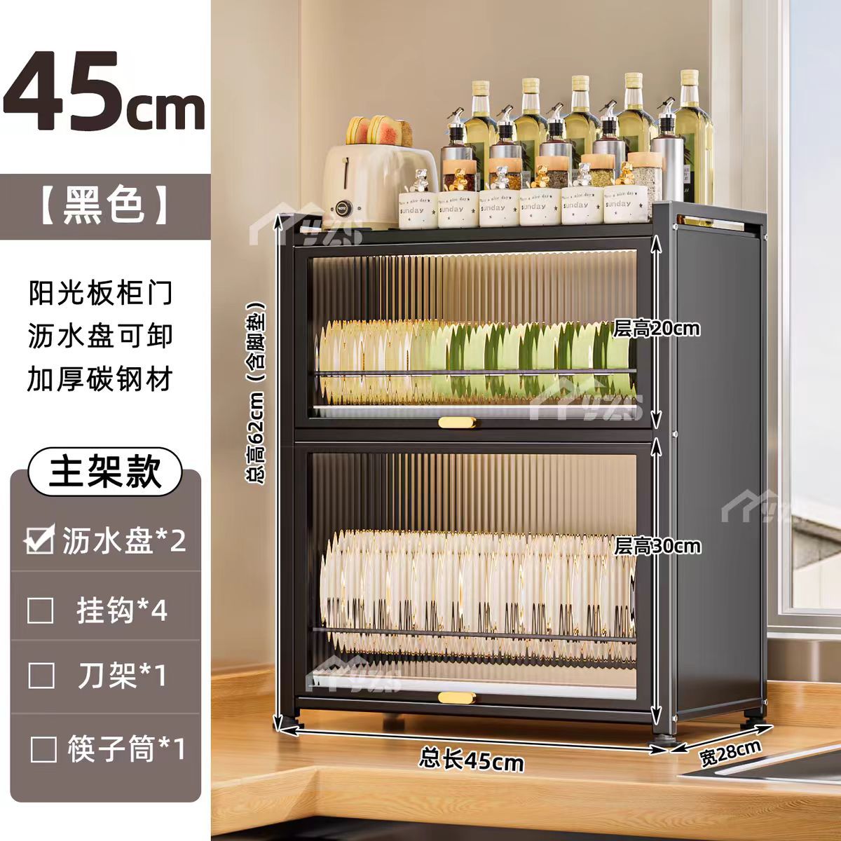 • 45cm [블랙] 접시와 찬장 + 칼꽂이 + 젓가락통 + 프리 이동식 후크*4