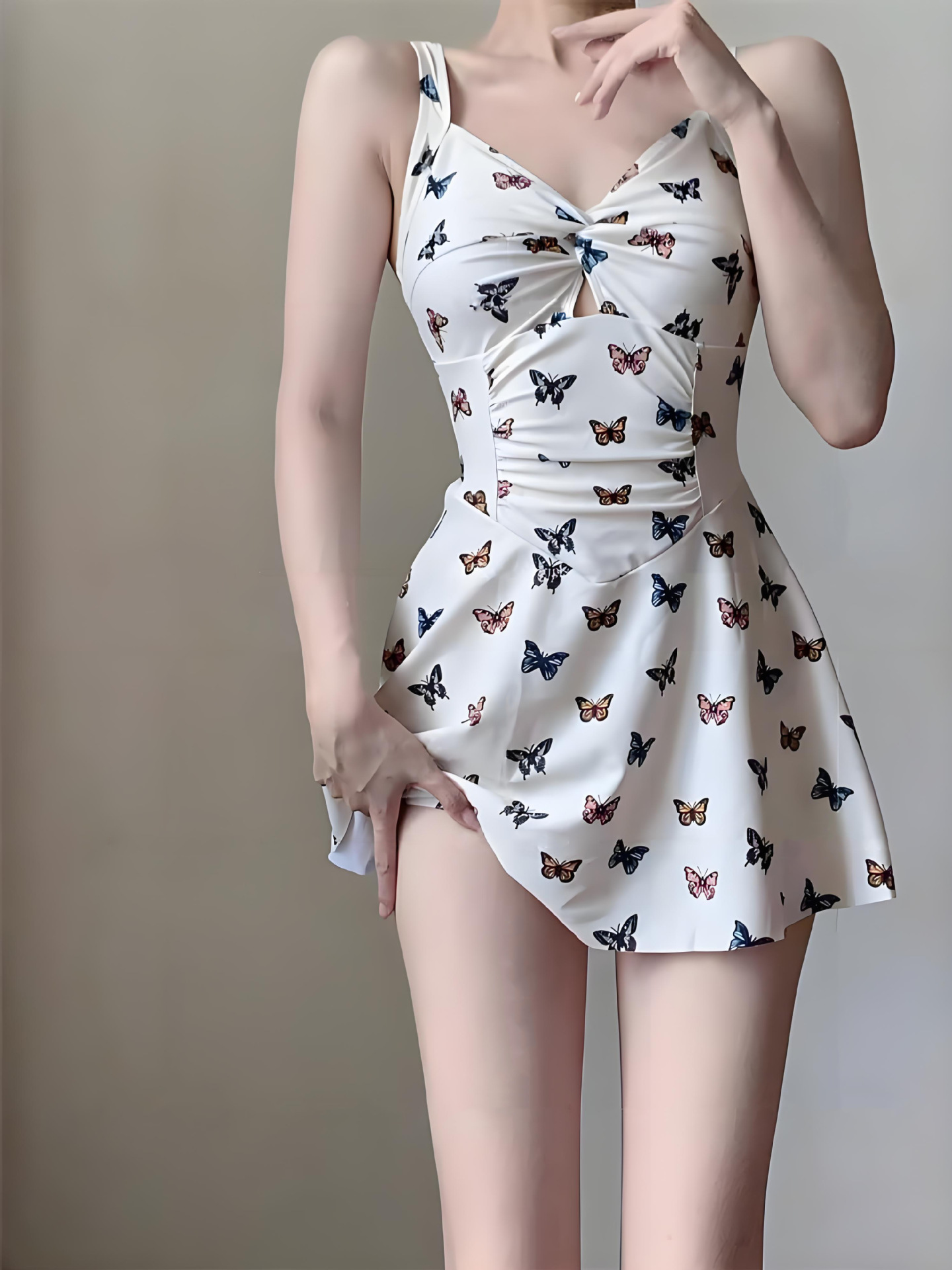 2025 새로운 폴리 에스터 슬링 원피스 스커트 스타일 소녀 패션 나비 백리스 슬리밍 수영복 여성스토어 가기