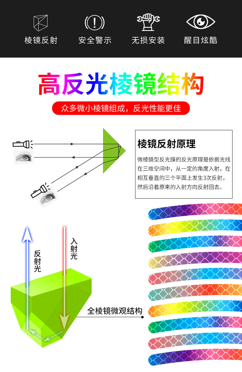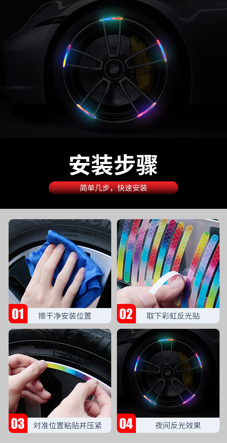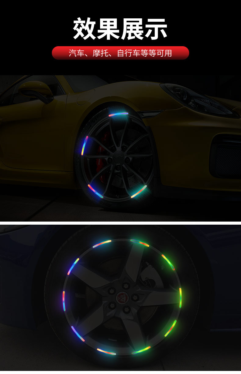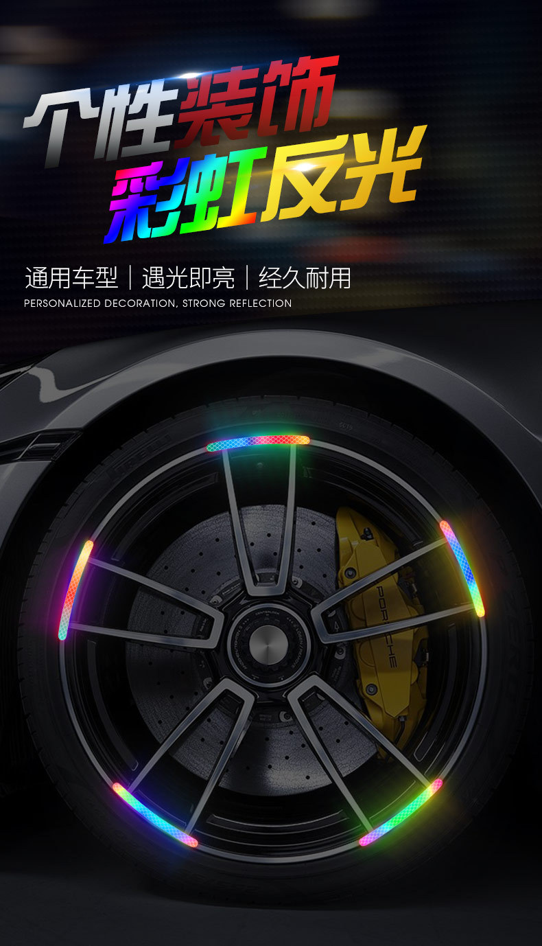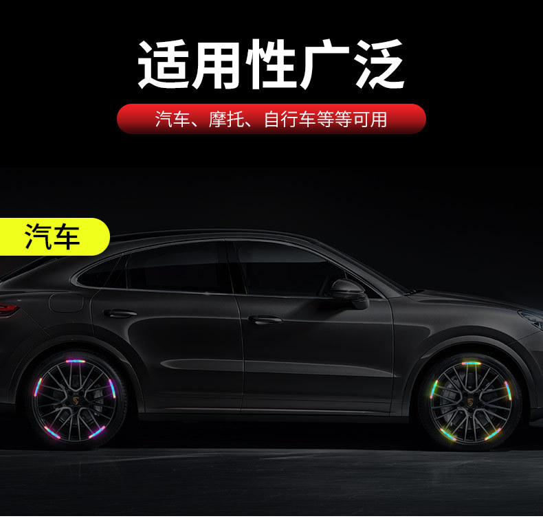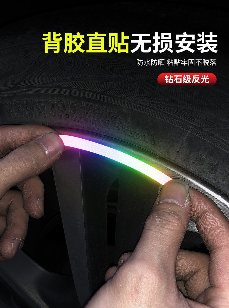 자동차 휠 반사 스티커 타이어 경고 스트립 자전거 전기 자동차 다채로운 레이저 충돌 방지 반사 경고 스티커
