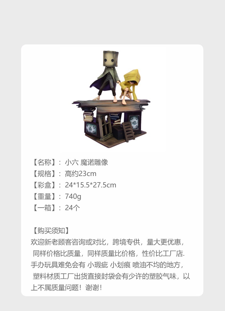 작은 악몽 2 손으로 만든 동상 장식품 작은 여섯 마그노 장면 모델 인형 공포 모험 게임스토어 가기
