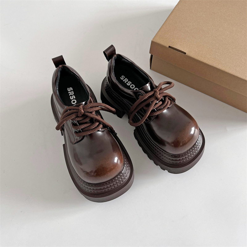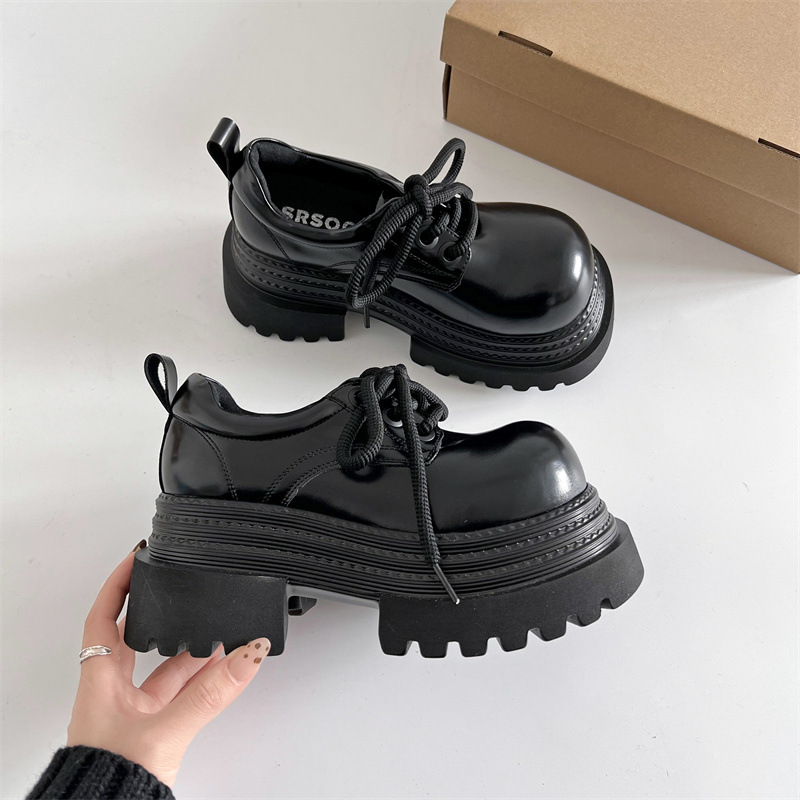 패셔너블한 출퇴근용 블랙 두꺼운 굽의 여성용 가죽 신발 2025년 신상 가을 겨울 다용도 키높이 메리제인 슈즈스토어 가기