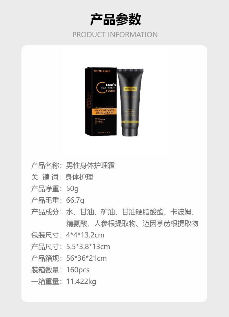 노스 문 남성 바디 케어 크림 남성 내구성 강화 바디 마사지 강한 활력 관리 크림