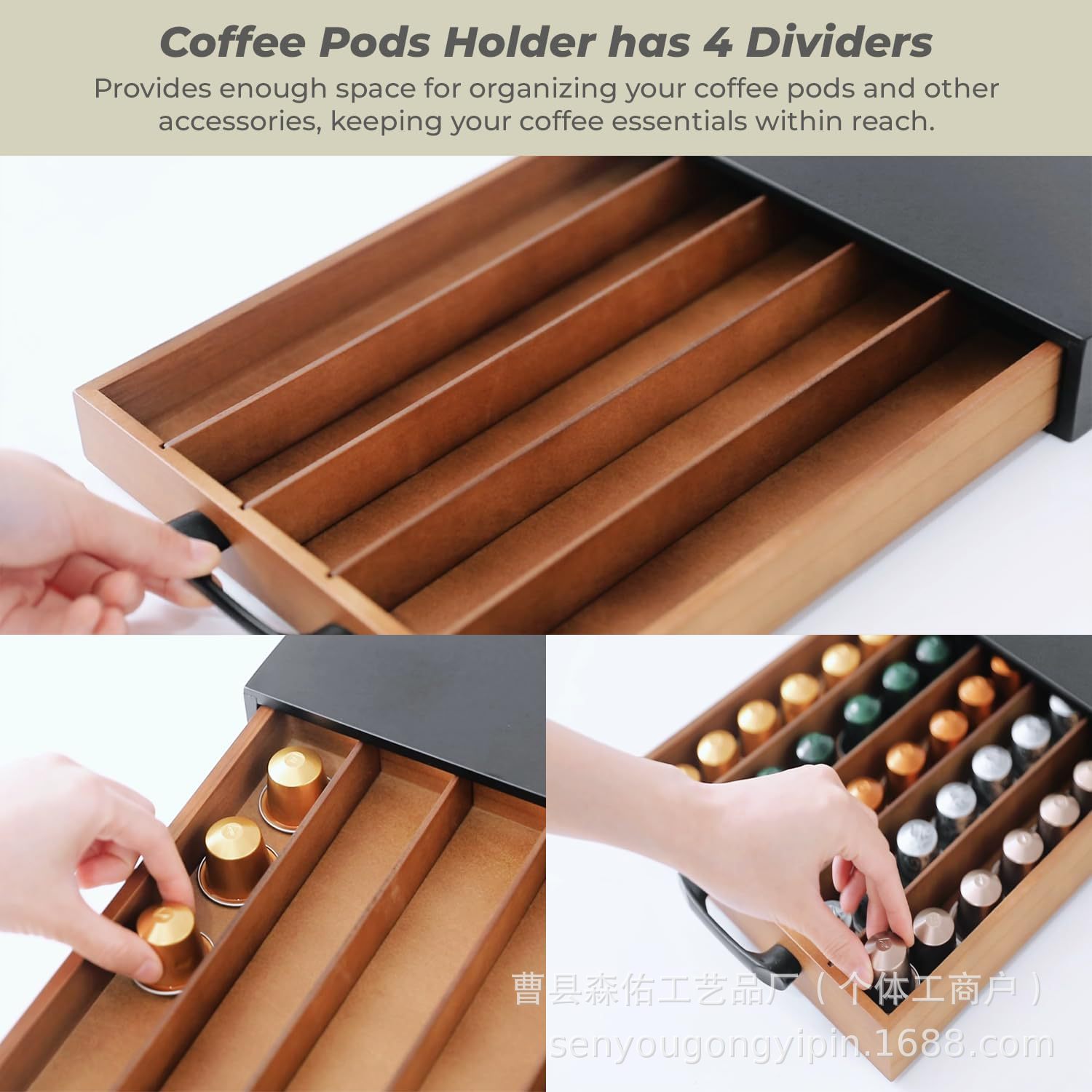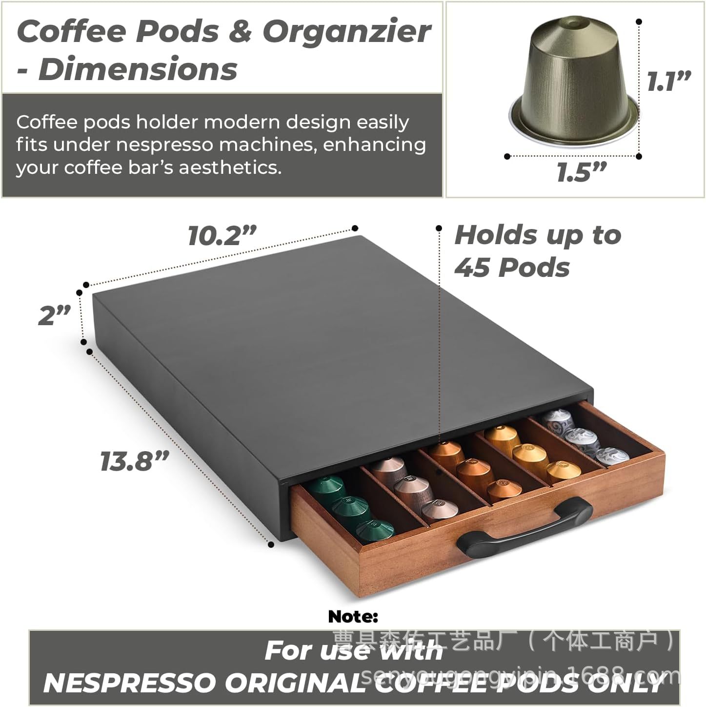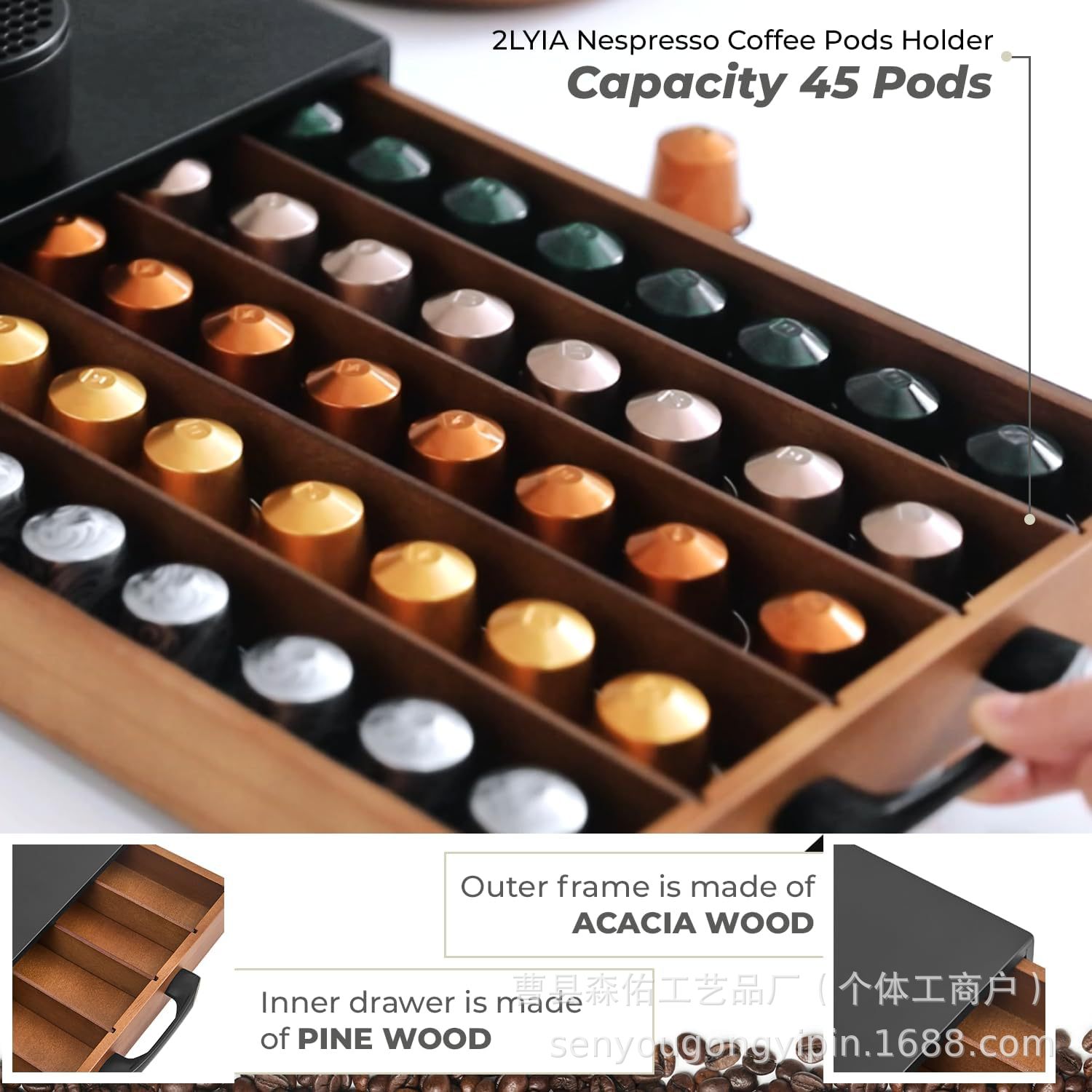 구획이있는 국경 나무 서랍 형 저장 상자 커피 기계 기본 단단한 나무 커피 캡슐 보관 랙