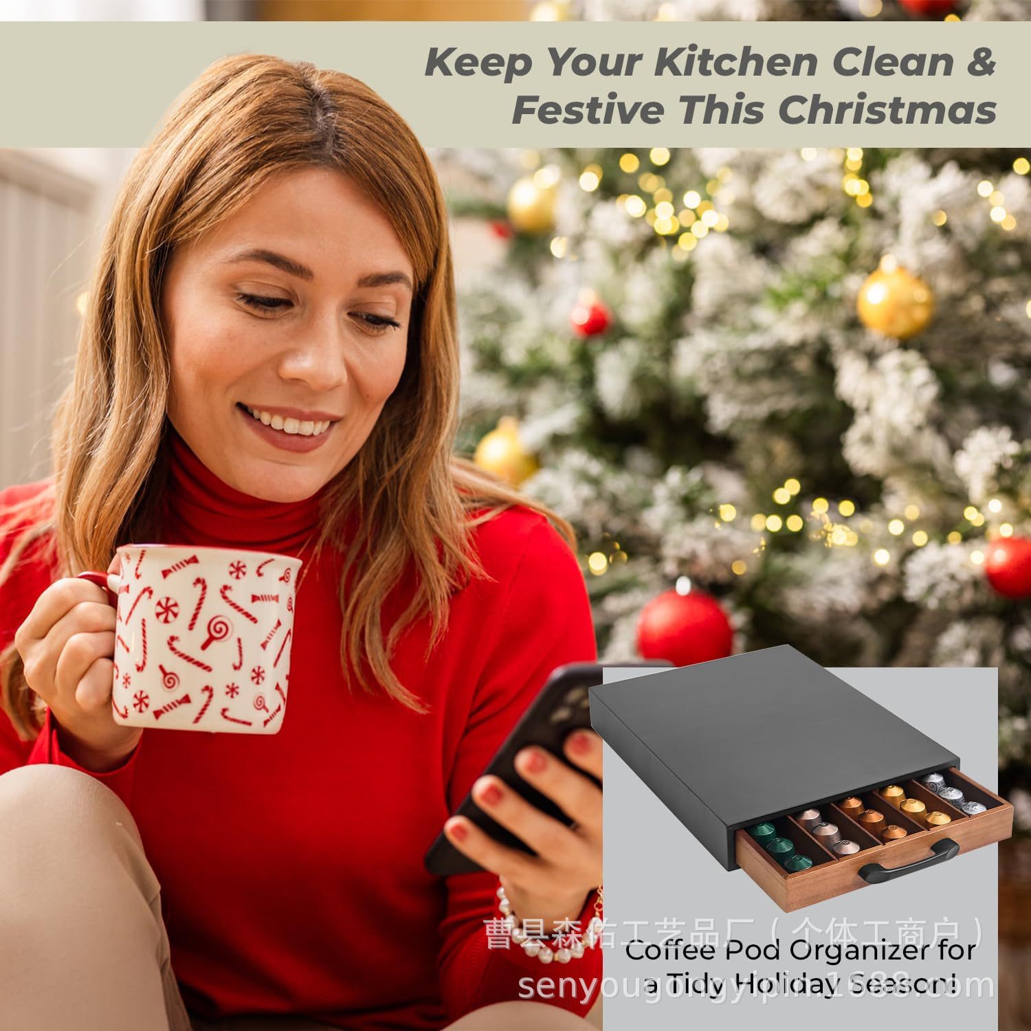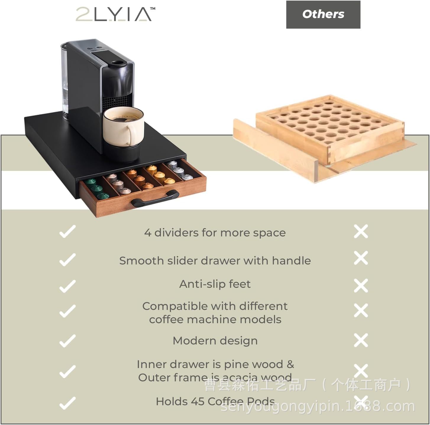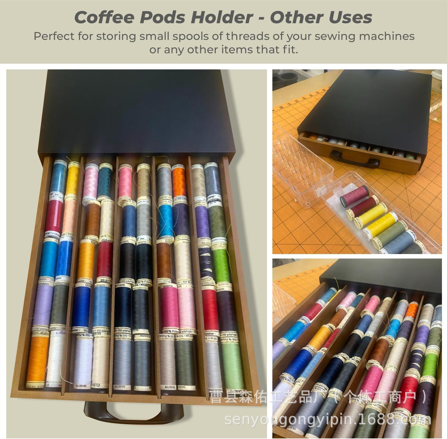 구획이있는 국경 나무 서랍 형 저장 상자 커피 기계 기본 단단한 나무 커피 캡슐 보관 랙