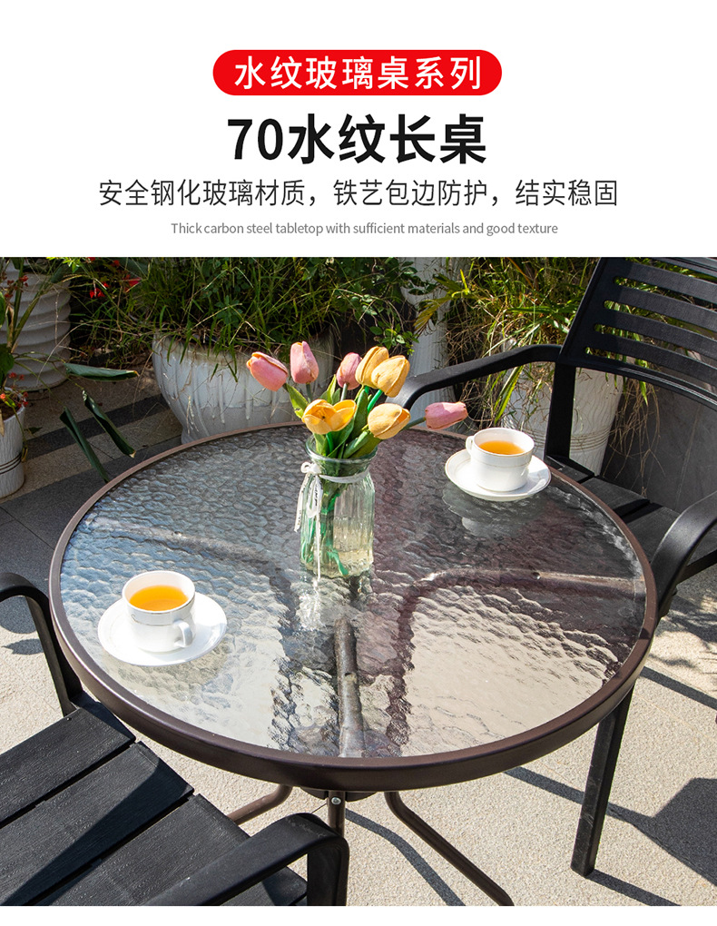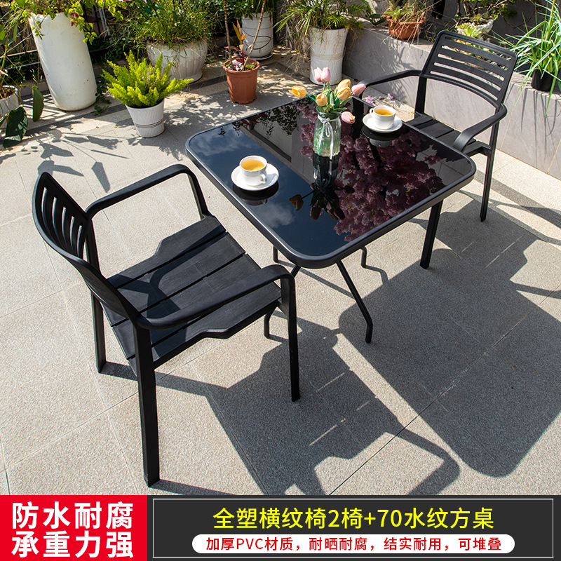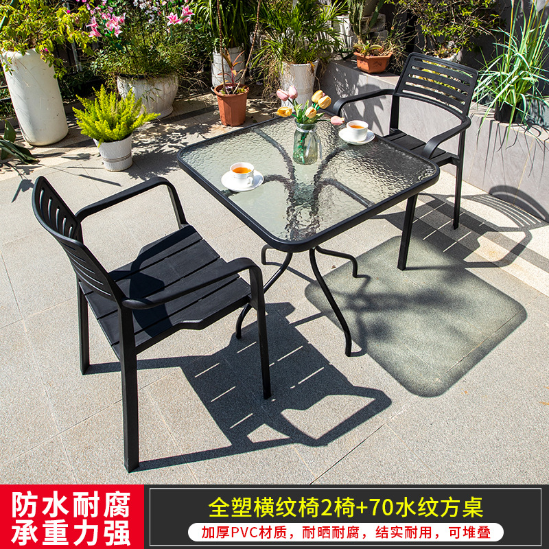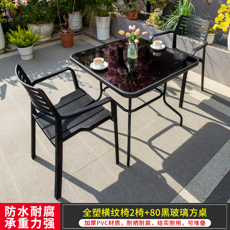 • 전체 플라스틱 가로 패턴 의자 의자 2개 + 검정색 유리 사각 테이블 80개