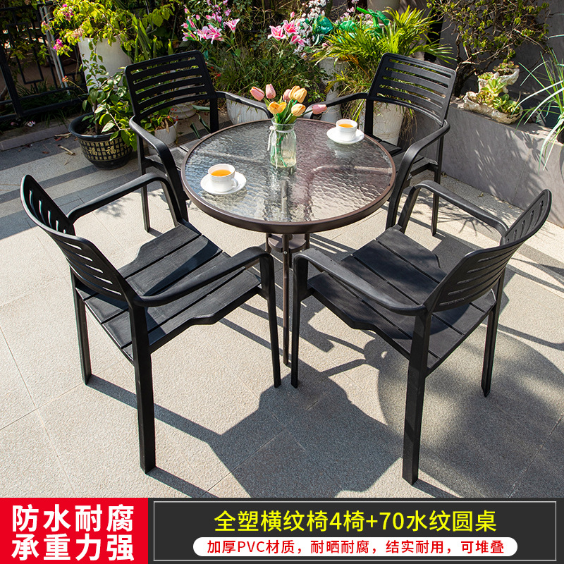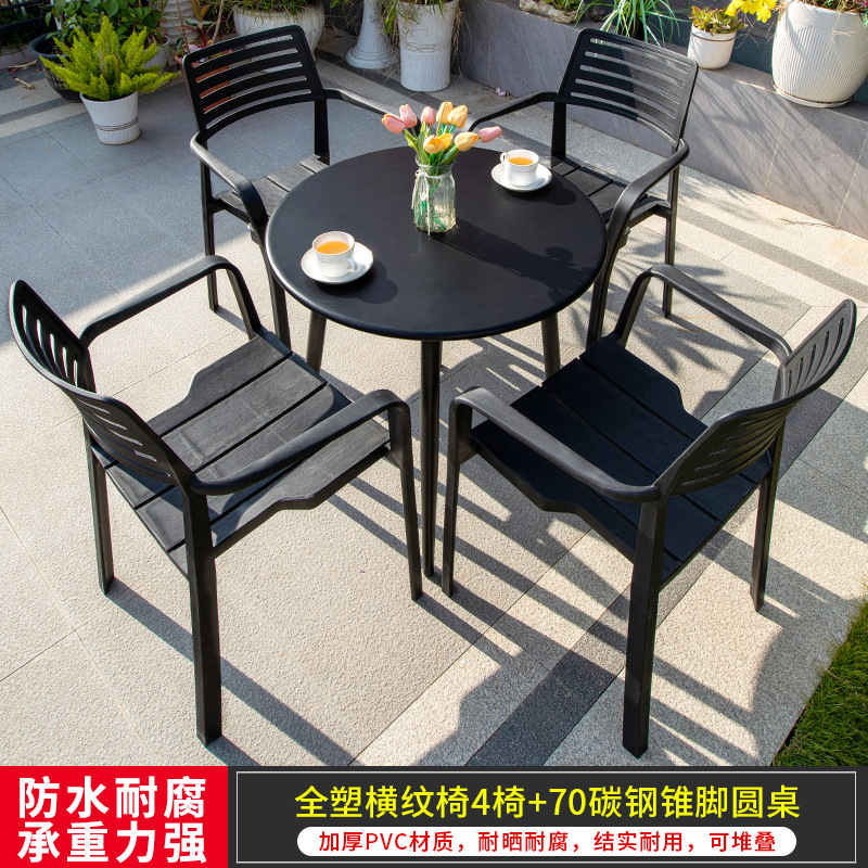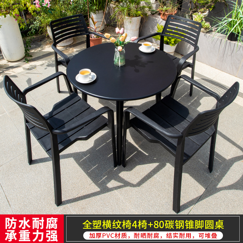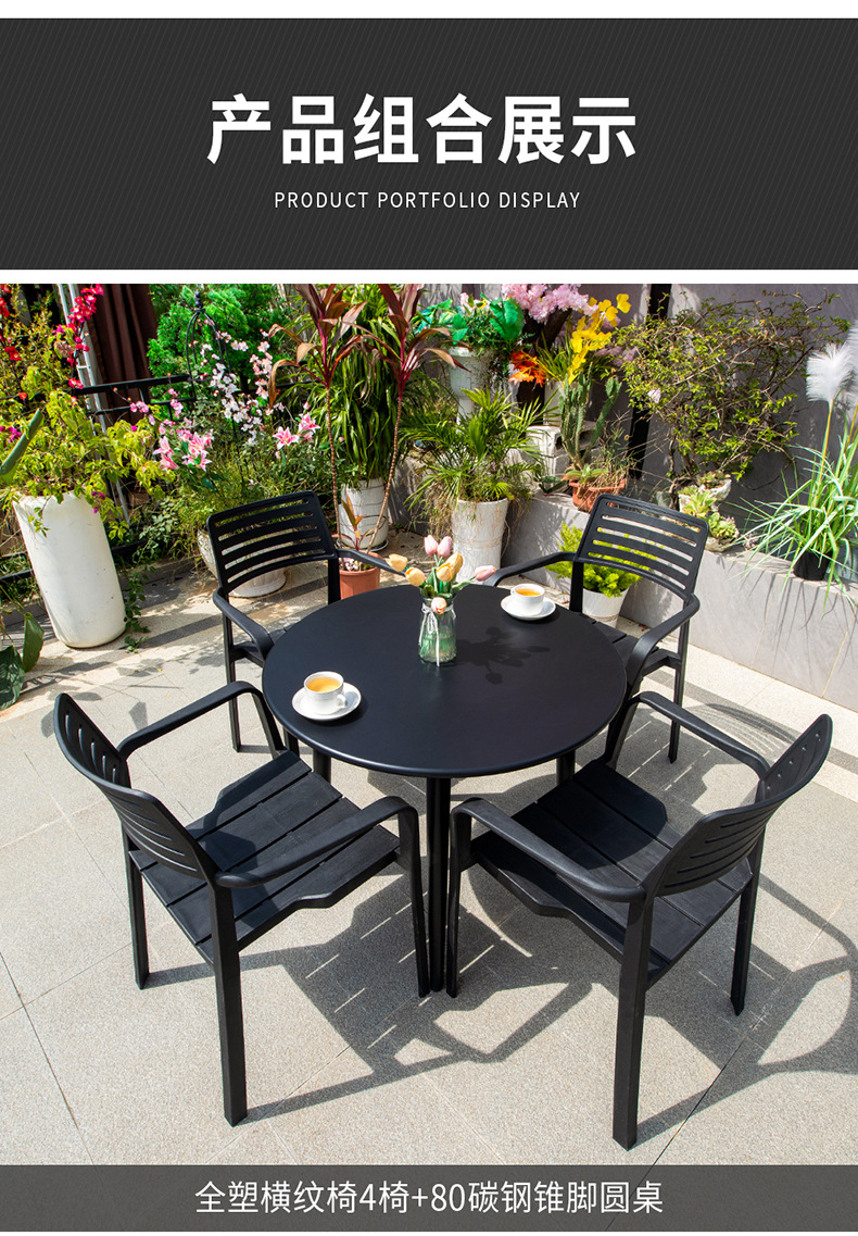 • 전체 플라스틱 가로 패턴 의자 4개 + 80탄소강 테이퍼형 원형 테이블