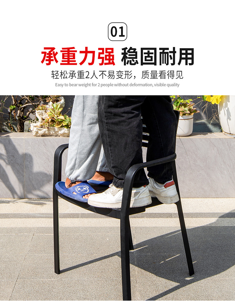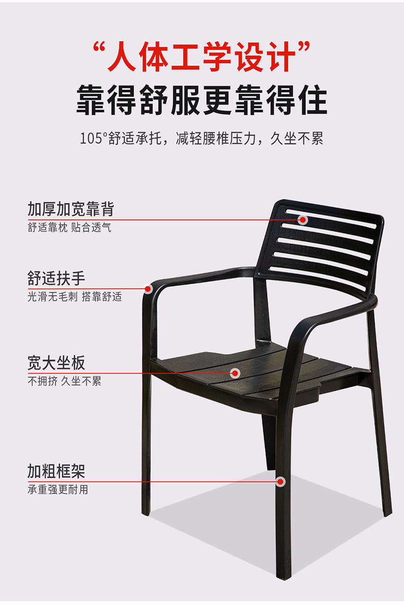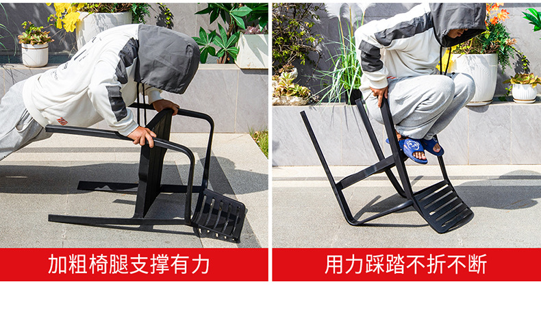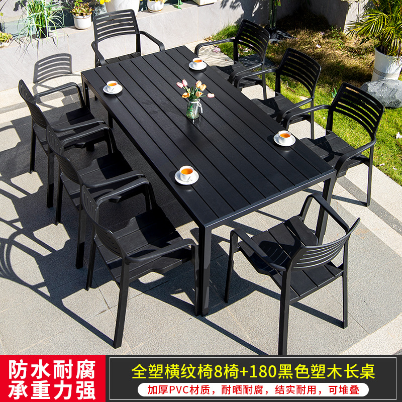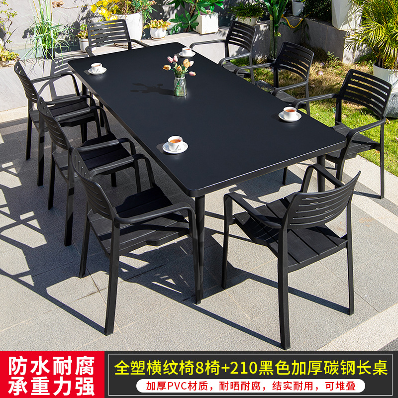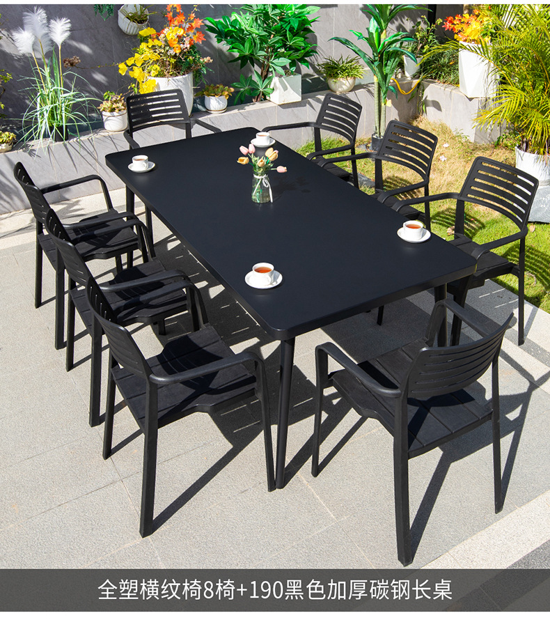• 전체 플라스틱 가로 패턴 의자 8개 + 210 검정색 두꺼운 탄소강 긴 테이블