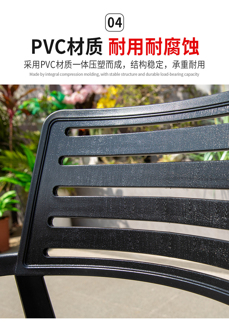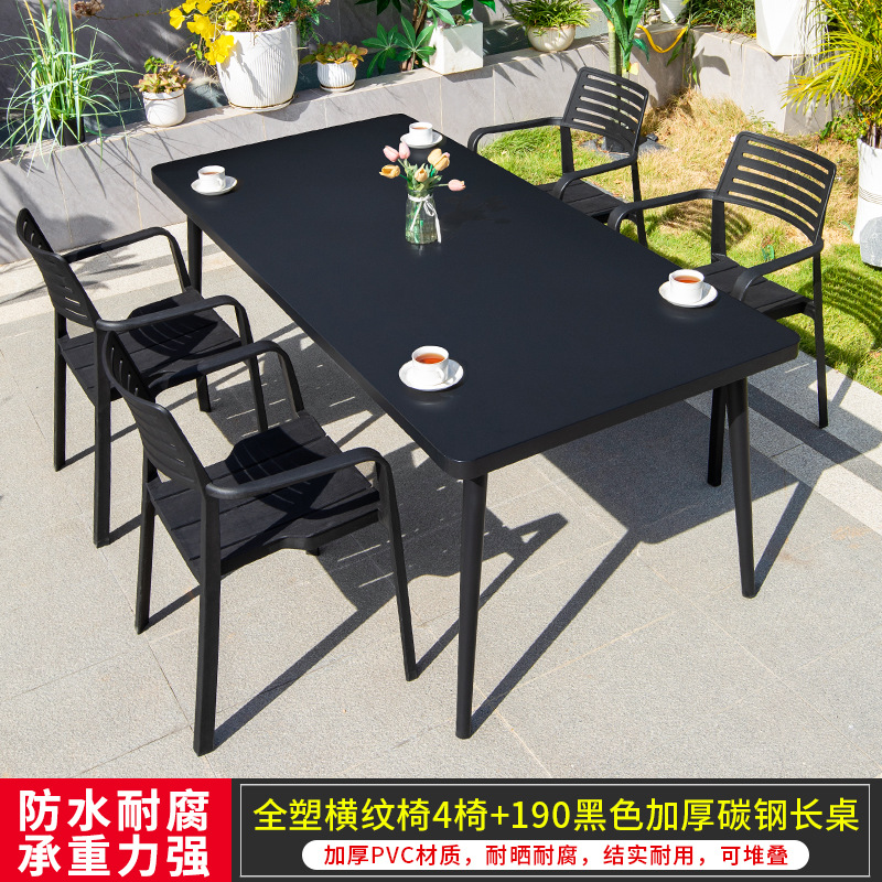 • 전체 플라스틱 가로 패턴 의자 4개 + 190 검정색 두꺼운 탄소강 긴 테이블