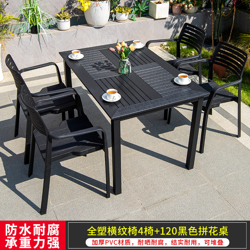 • 전체 플라스틱 가로 패턴 의자 의자 4개 + 검정색 패치워크 테이블 120개