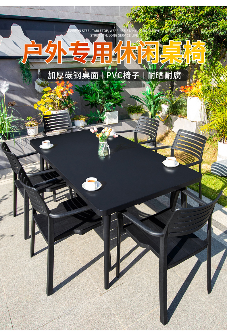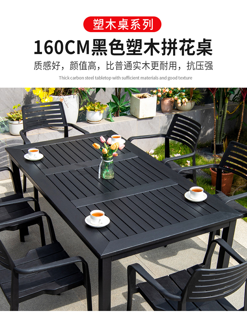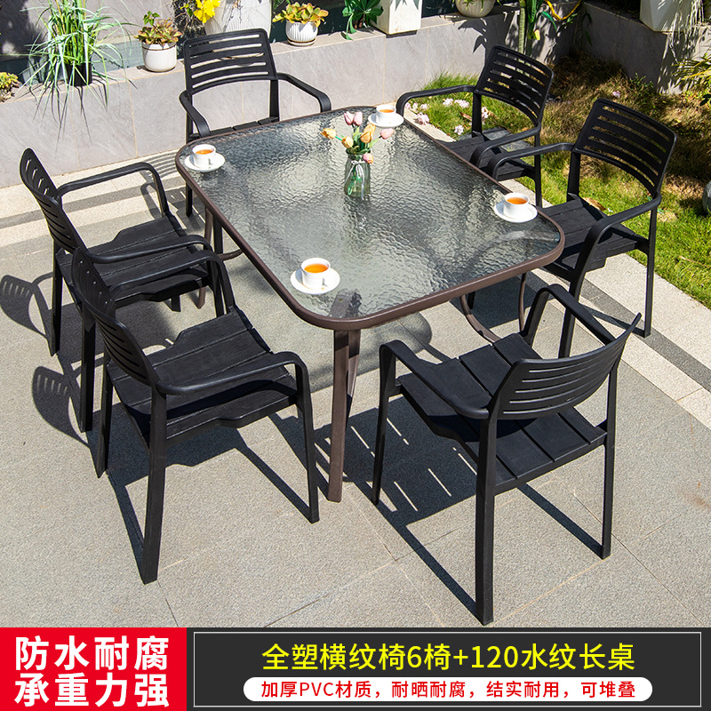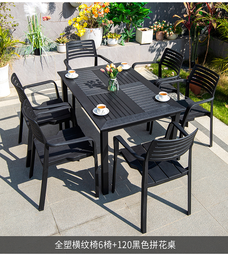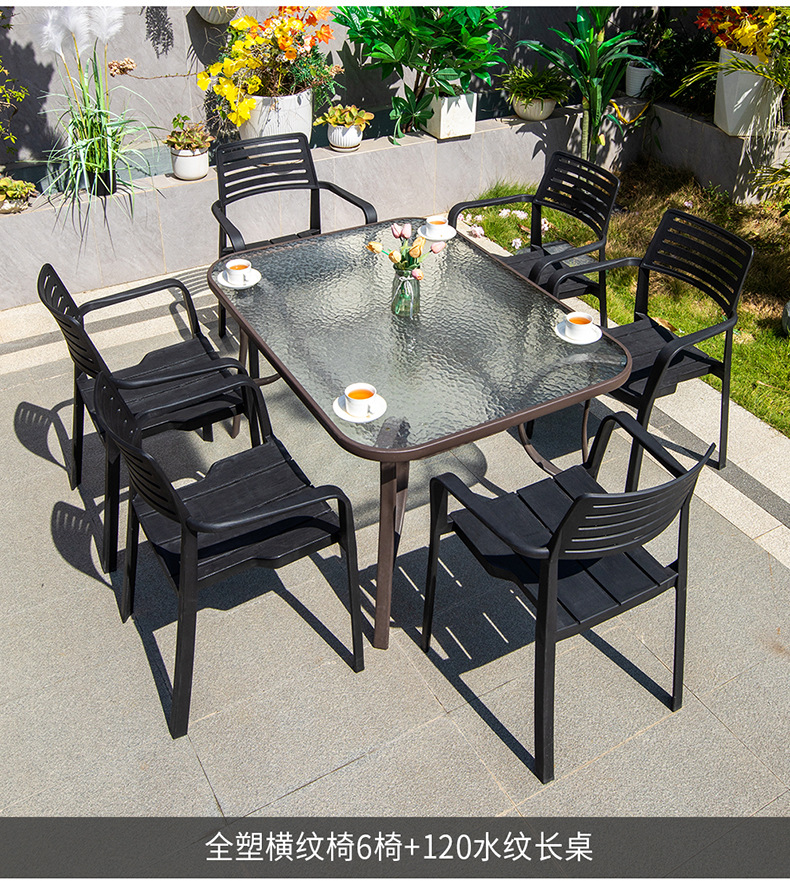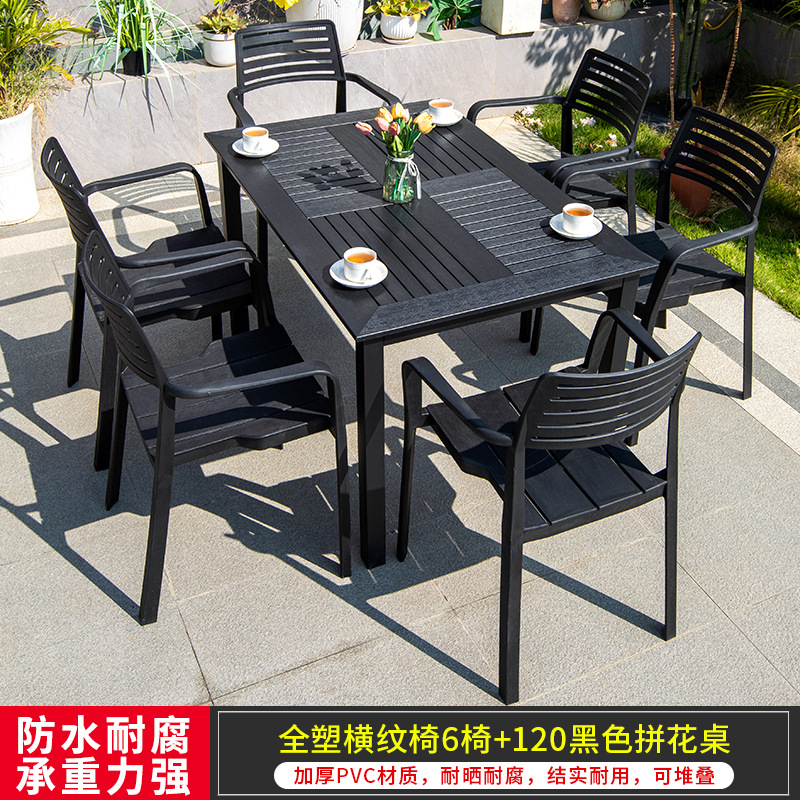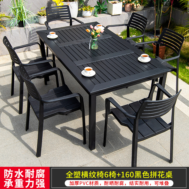 • 전체 플라스틱 수평 패턴 의자 6개 + 160 검정색 두꺼운 탄소강 긴 테이블