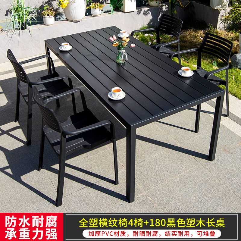 • 전체 플라스틱 가로 패턴 의자 4개 + 180 검정색 플라스틱 나무 긴 테이블