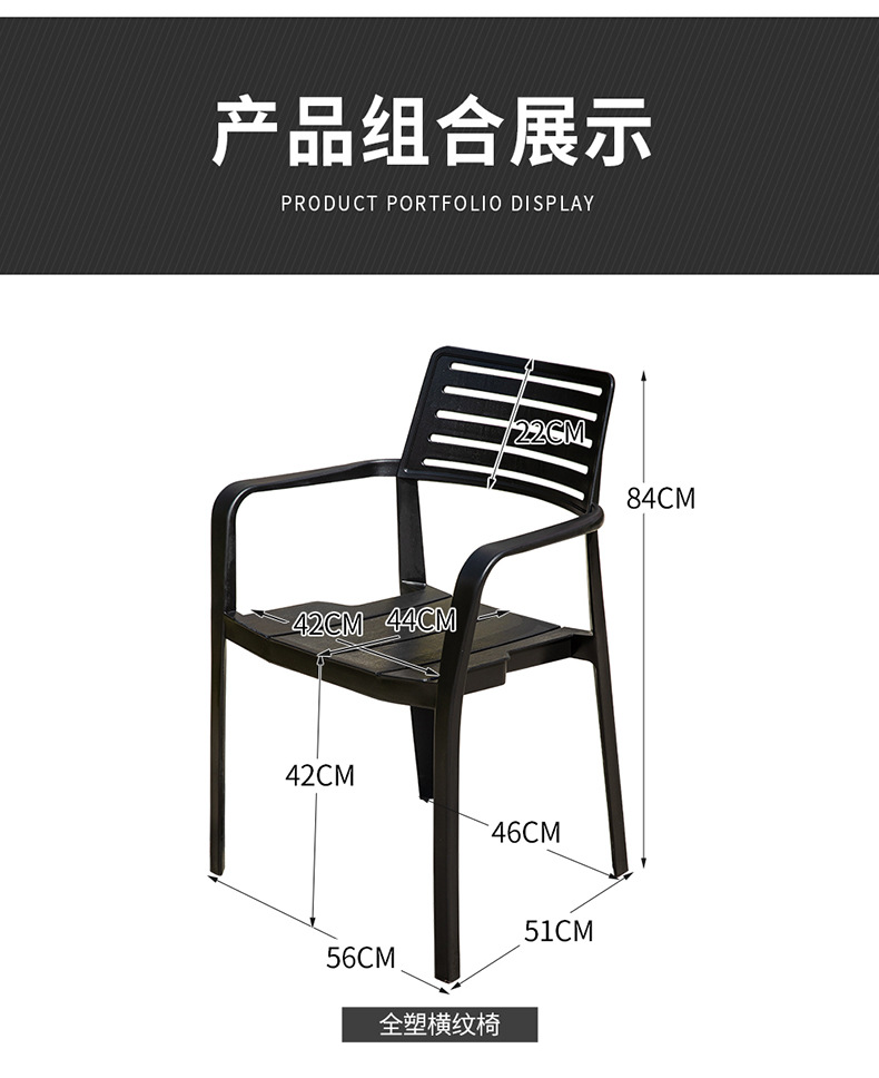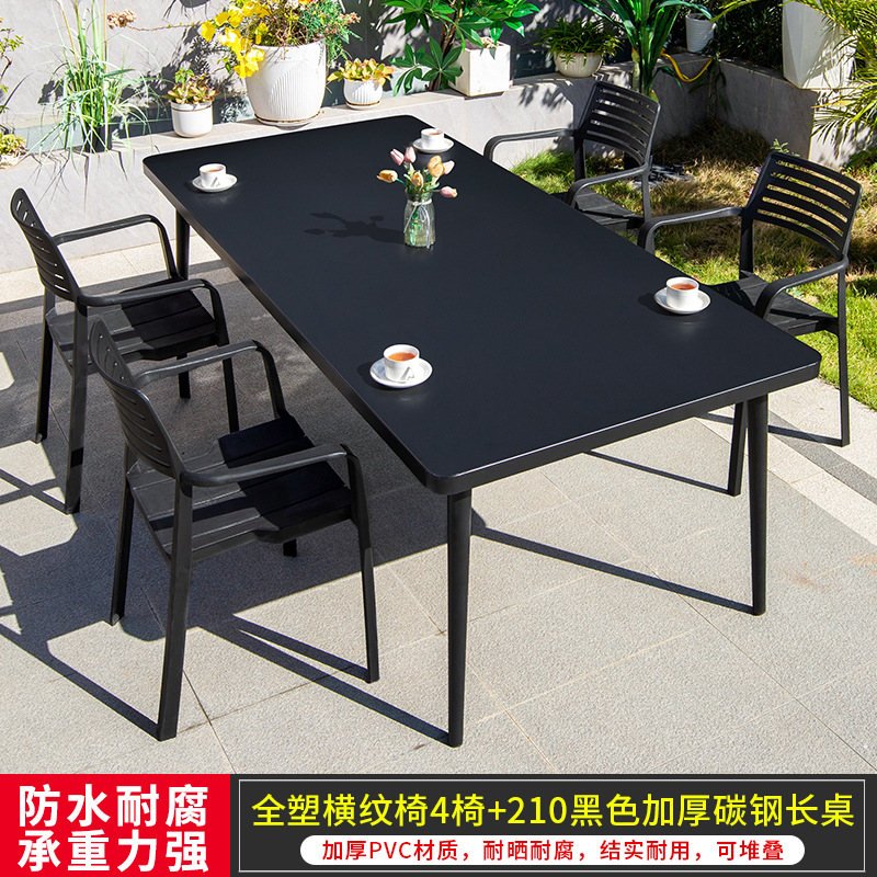 • 전체 플라스틱 가로 패턴 의자 4개 + 210 검정색 두꺼운 탄소강 긴 테이블