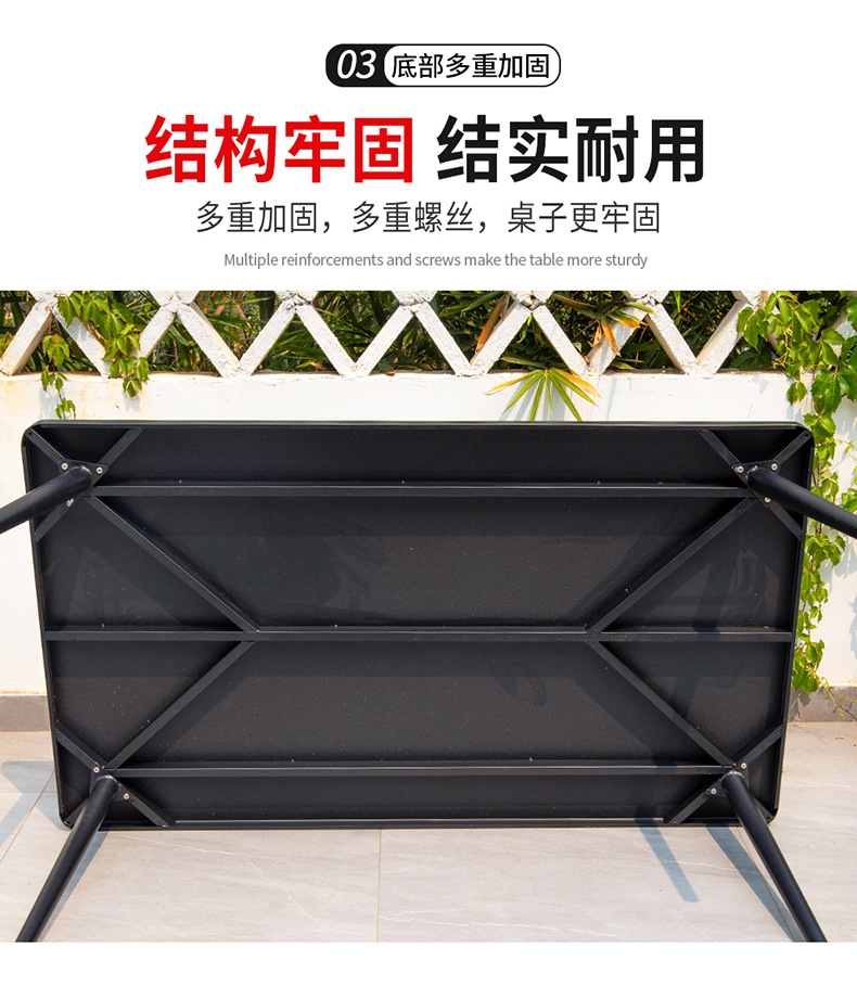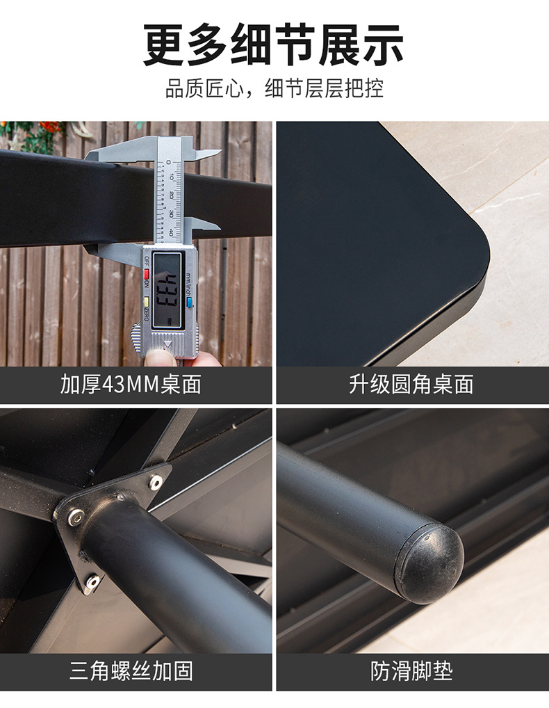인터넷 축하 야외 식탁 및 의자 조합 탄소 강철 긴 광장 테이블 야외 레스토랑 바 우유 차 가게 야외 발코니 상업