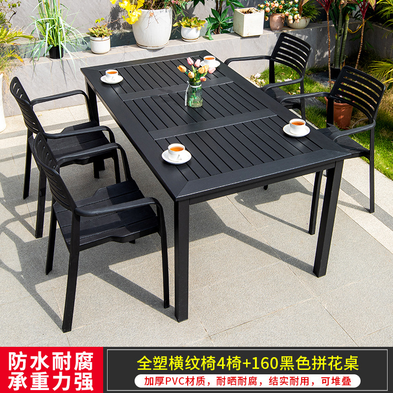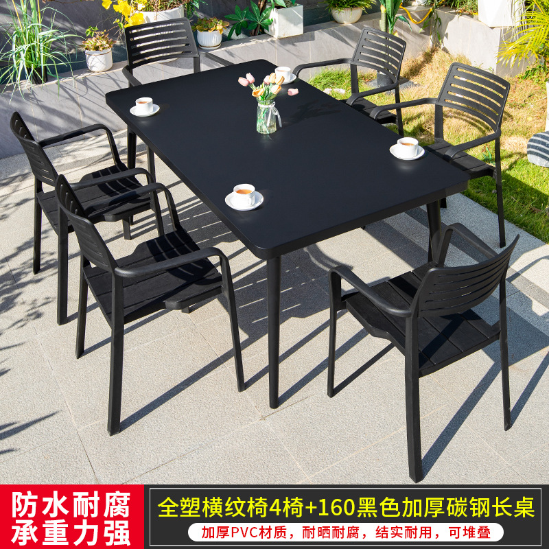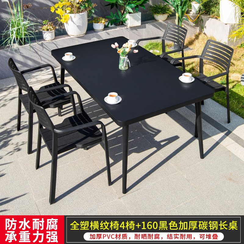• 전체 플라스틱 가로 패턴 의자 4개 + 160 검정색 두꺼운 탄소강 긴 테이블