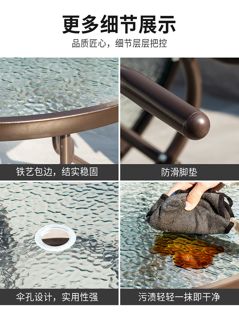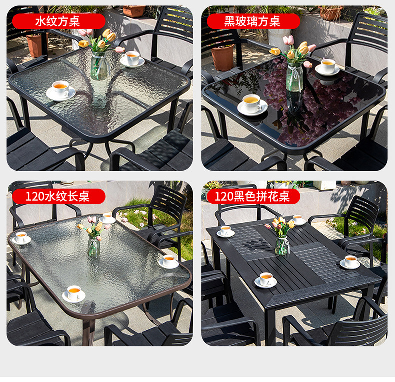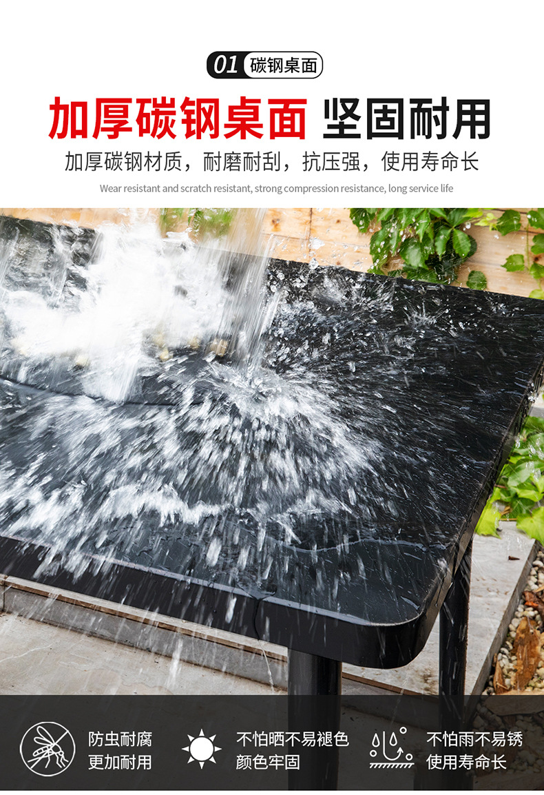 인터넷 축하 야외 식탁 및 의자 조합 탄소 강철 긴 광장 테이블 야외 레스토랑 바 우유 차 가게 야외 발코니 상업스토어 가기