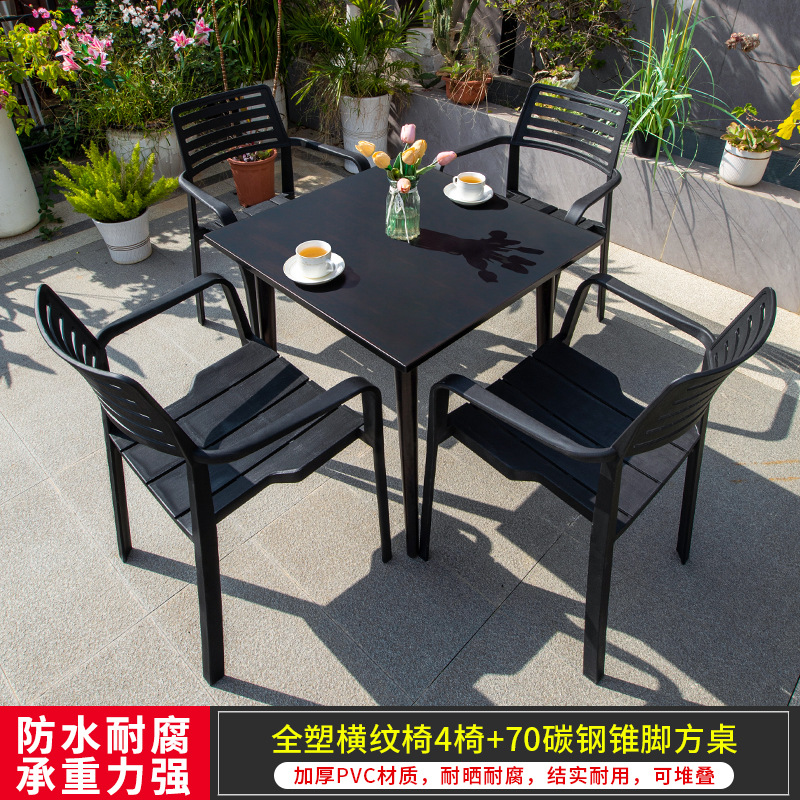 • 전체 플라스틱 가로 패턴 의자 4개 + 70 탄소강 테이퍼형 다리 사각 테이블