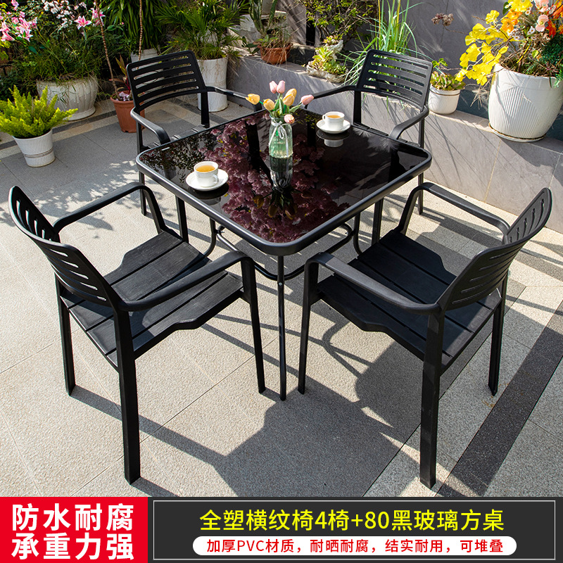 • 전체 플라스틱 가로 패턴 의자 4개 + 검정색 유리 사각 테이블 80개