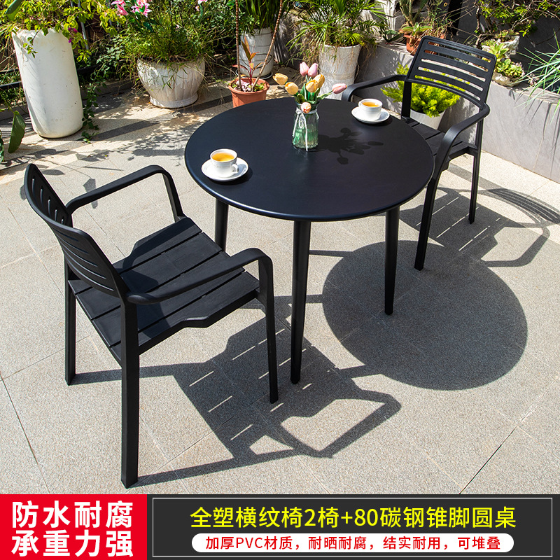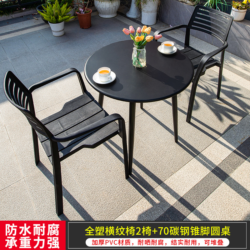 • 전체 플라스틱 가로 패턴 의자 2개 + 70 탄소강 원뿔형 원형 테이블