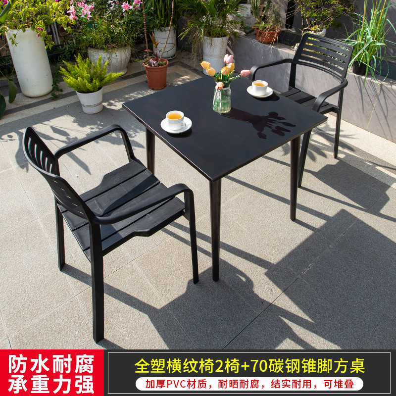 • 전체 플라스틱 가로 패턴 의자 2개 + 70 탄소강 테이퍼형 다리 사각 테이블