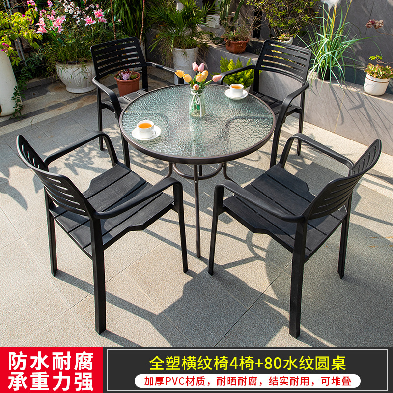 • 전체 플라스틱 가로 패턴 의자 4개 + 물 패턴 원형 테이블 80개