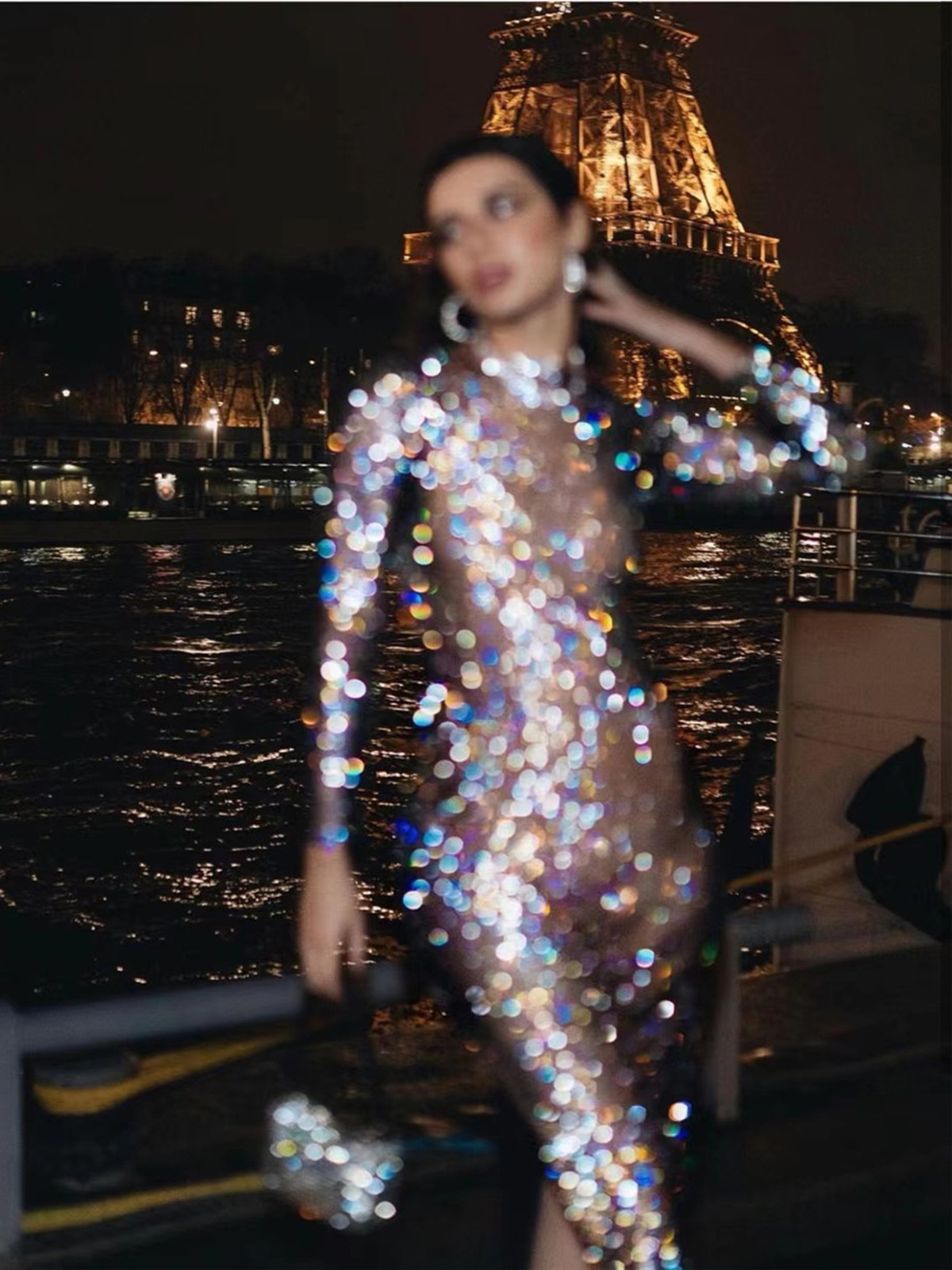 Shein Amazon 유럽과 미국 국경 간 뜨거운 섹시한 타이트 스플릿 긴 소매 라인 스톤 파티 여성 원피스 원피스스토어 가기