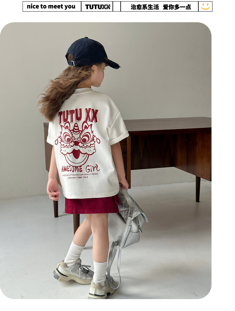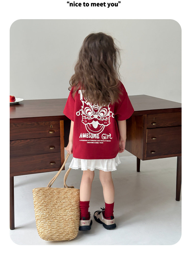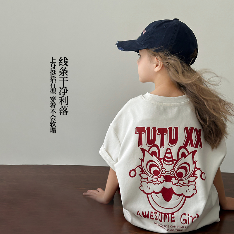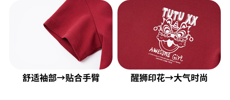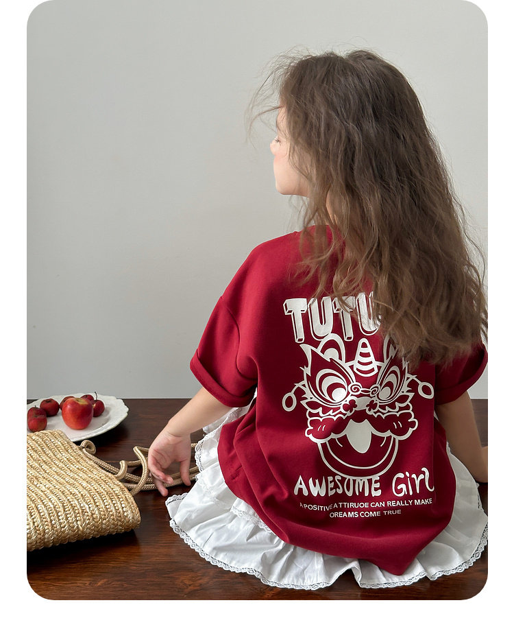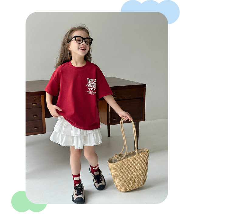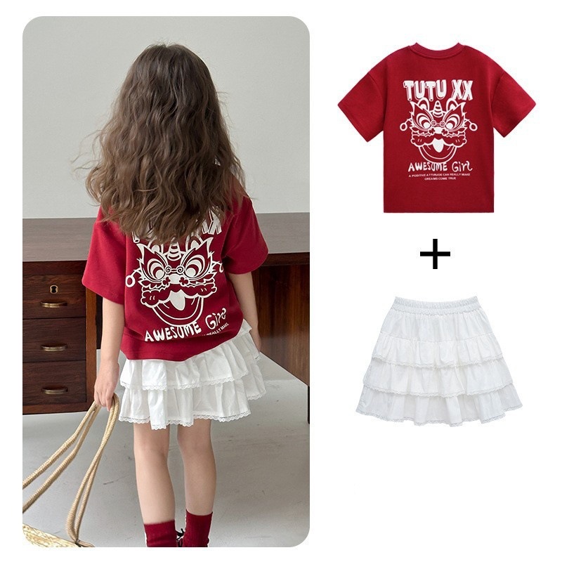 투투 리틀 엘리펀트 여아 티셔츠 2026 봄 신상품 새해 레드 아동 캐주얼 반팔 부모-자녀 베이스 레이어 상의