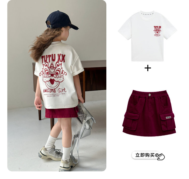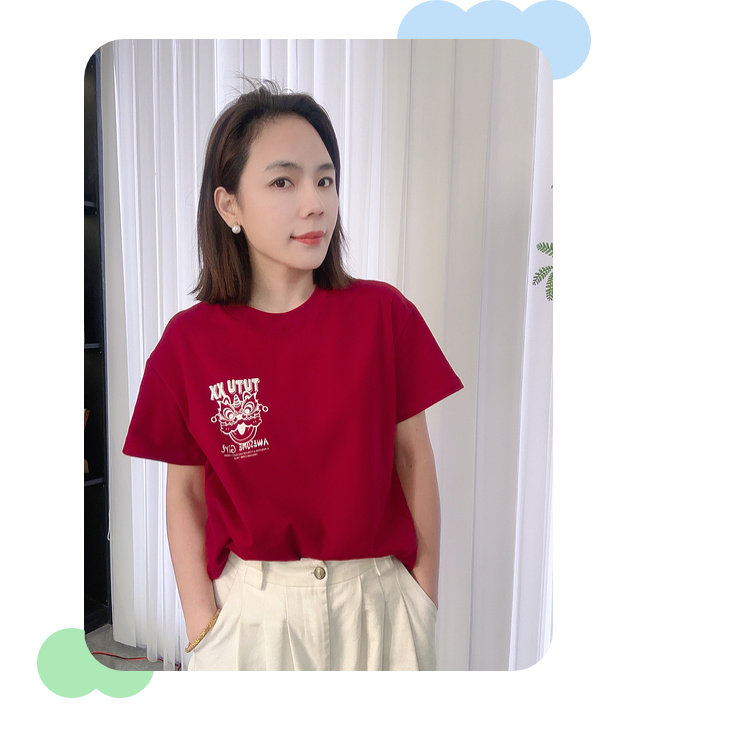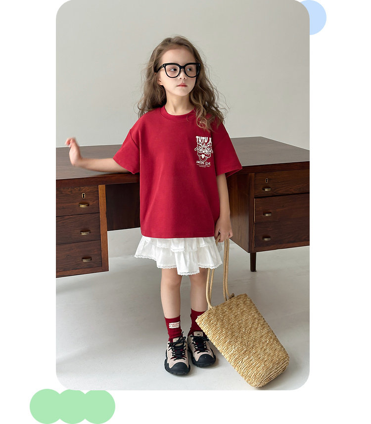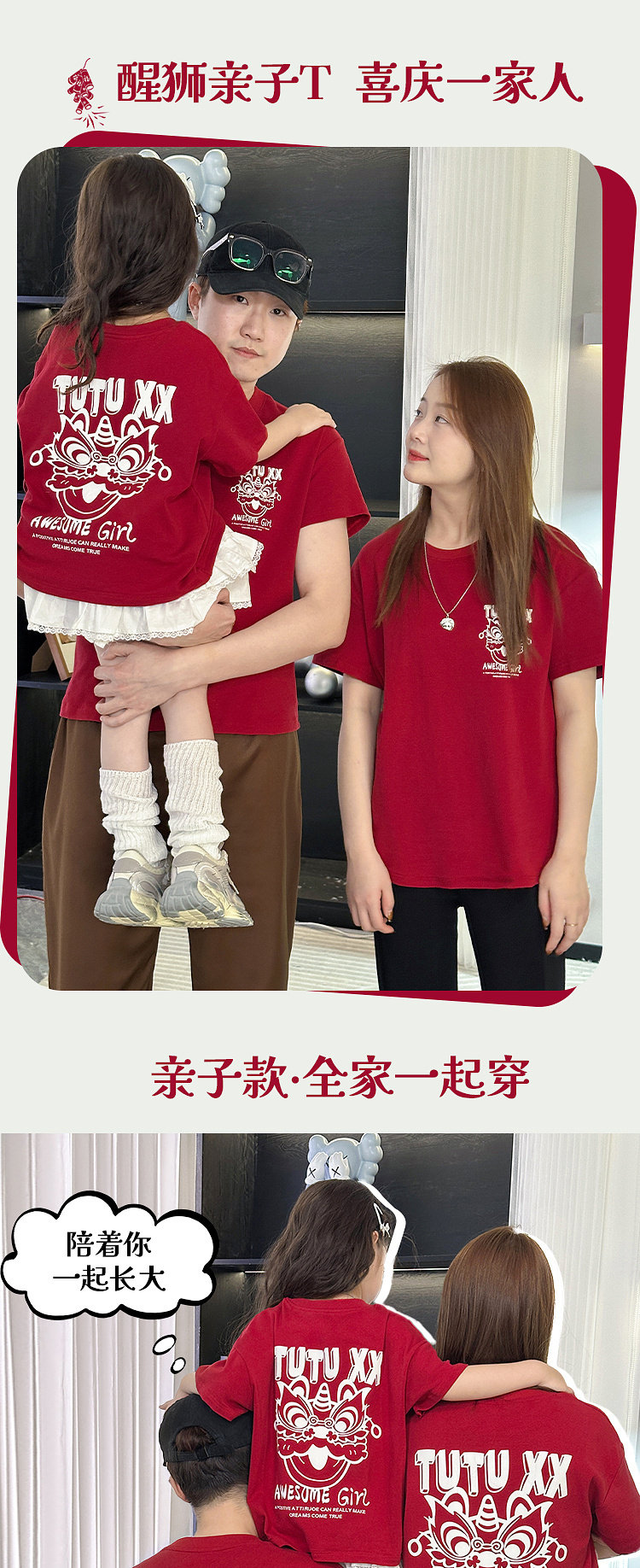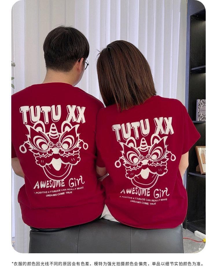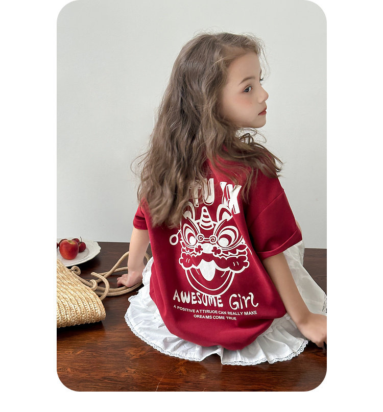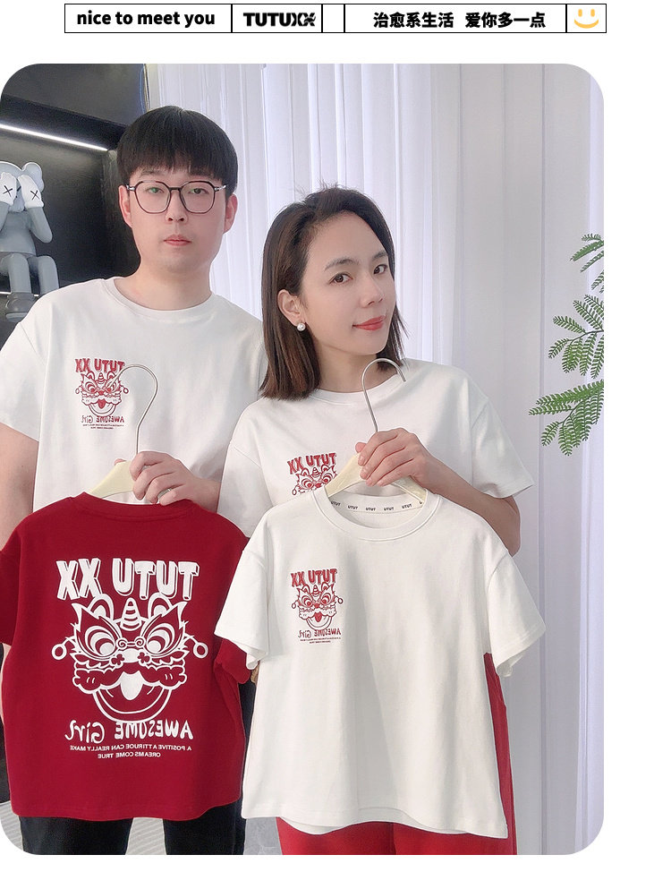 투투 리틀 엘리펀트 여아 티셔츠 2026 봄 신상품 새해 레드 아동 캐주얼 반팔 부모-자녀 베이스 레이어 상의스토어 가기