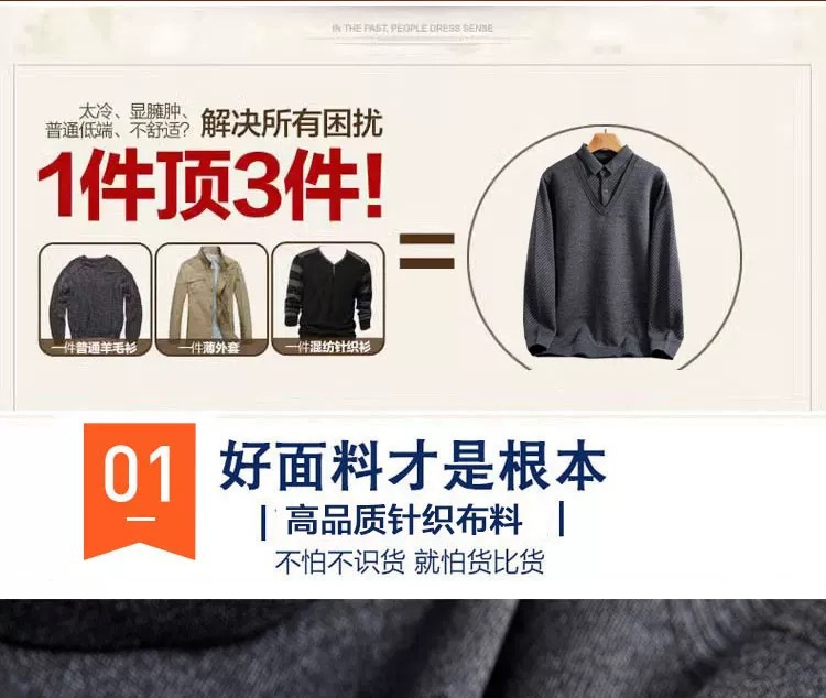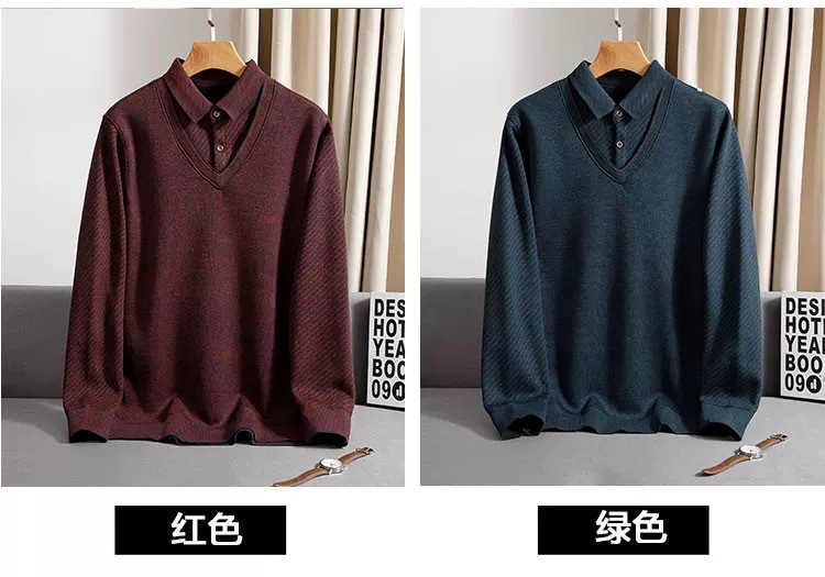 중년 기모 두꺼운 스웨터 남자 중년 및 노인 남성 가짜 투피스 티셔츠 아빠의 겨울 니트 따뜻한 탑스토어 가기