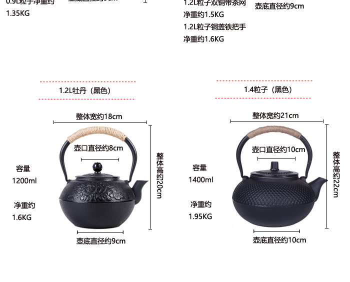 4JSH 주철 찻 주전자는 용광로 탄소 난로 화재 가열 수동 철 냄비 코팅되지 않은 주전자 차스토어 가기