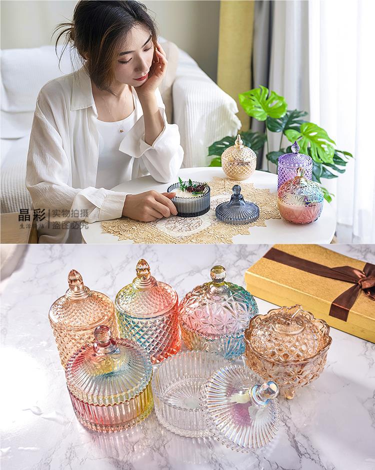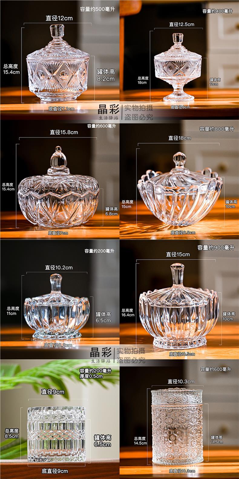 유럽식 유리 캔디 항아리 투명 보관 병 뚜껑 과일 그릇 설탕 항아리 조미료 항아리 재떨이 보석 상자 진 쑤언스토어 가기
