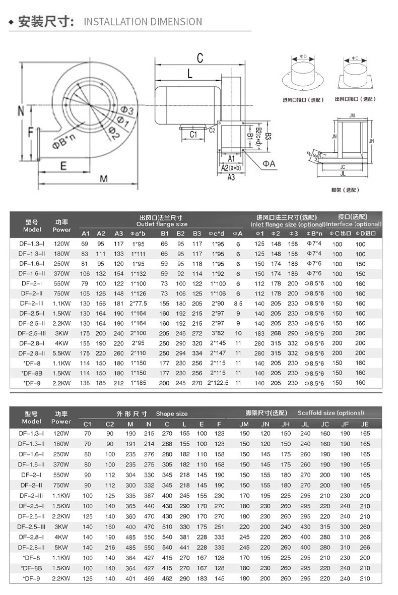 DF 침묵 원심 송풍기 220v 고출력 강력한 부는 고압 고온 저항 보일러 흡입 유도 드래프트 팬