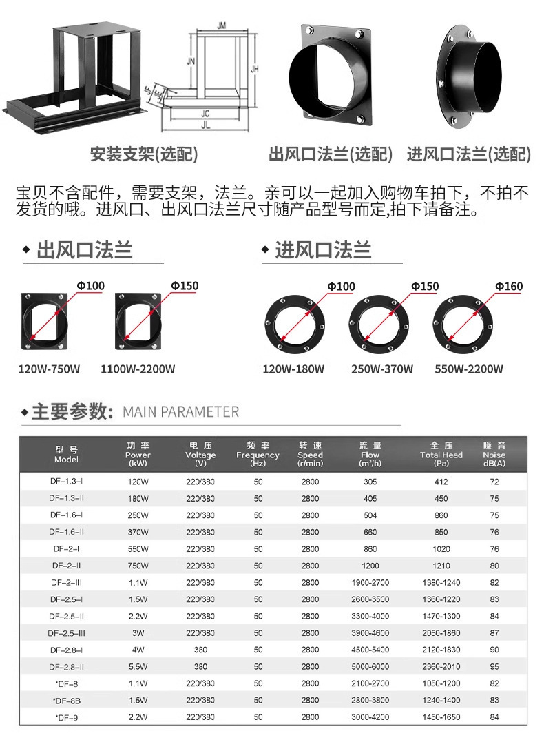 • DF180W/380v [업그레이드된 플랜지 모델]