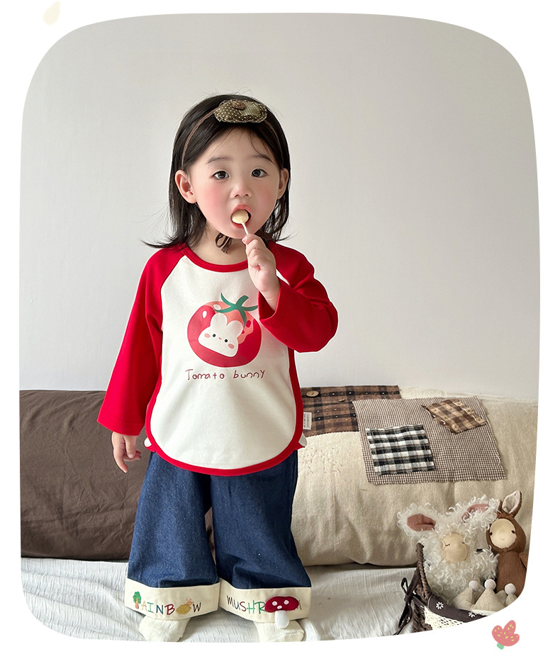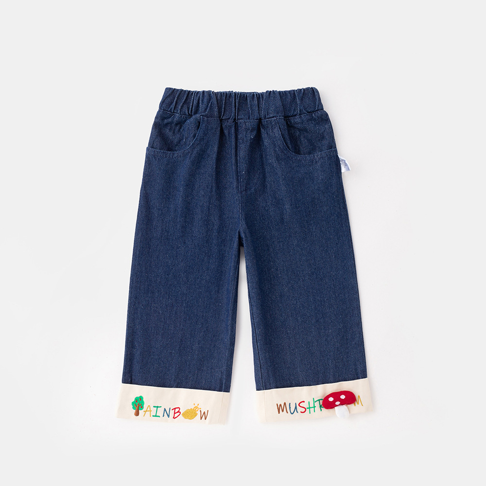 2025 새로운 어린이 청바지 봄과 가을 캐주얼 와이드 레그 바지 5013 모든 경기 플라 바지 아기 소녀 서양식 바지스토어 가기