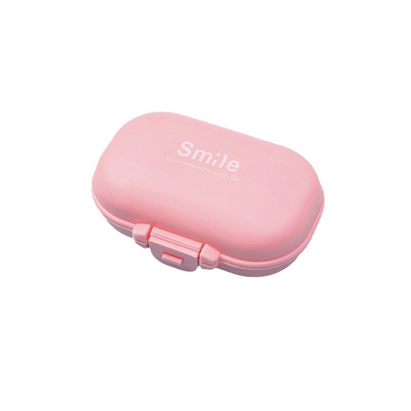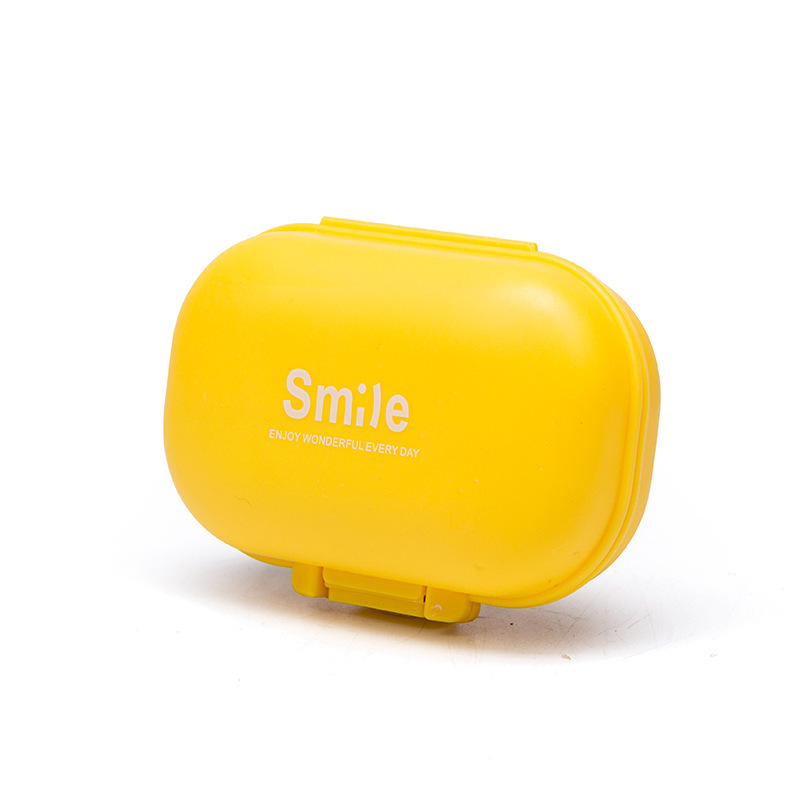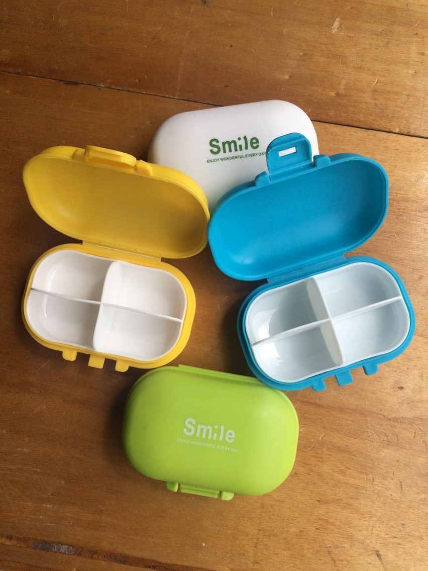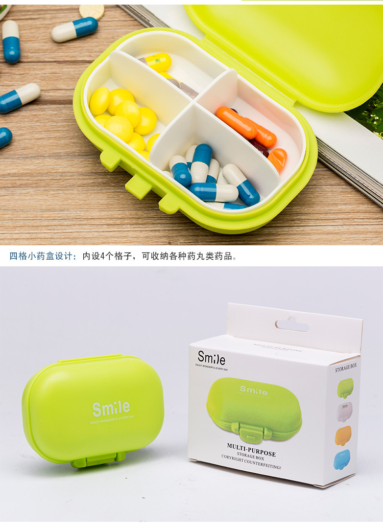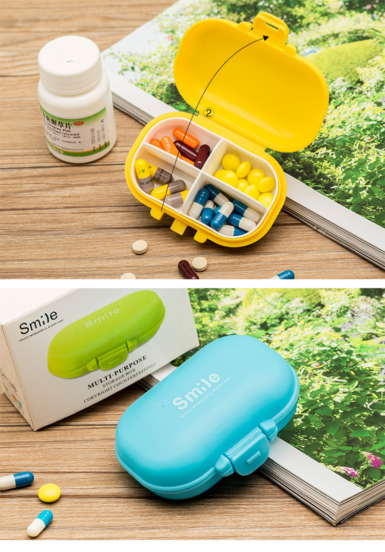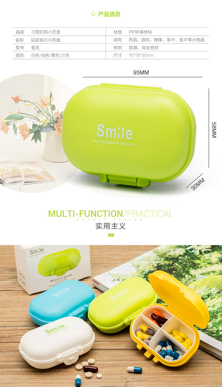 Smile Macaron 4 구획 알약 상자 휴대용 다중 구획 알약 상자 1 주 밀봉 된 알약 상자
