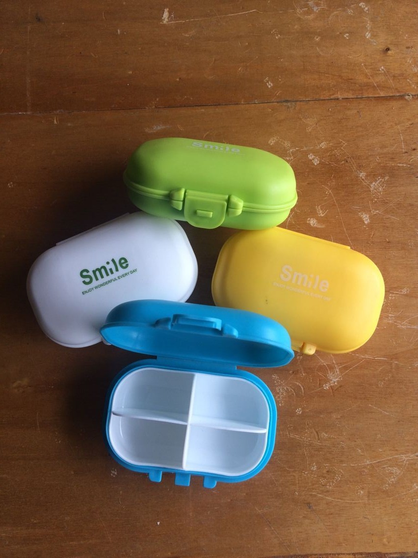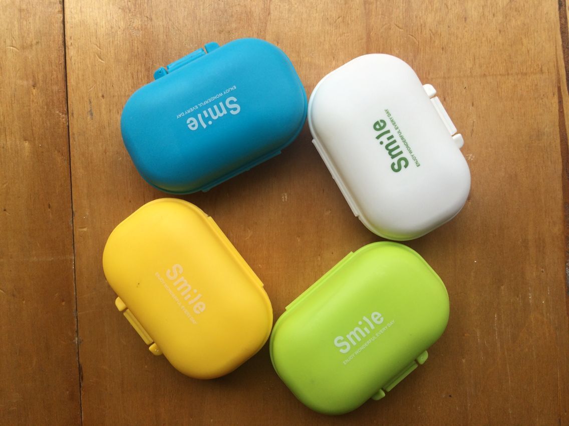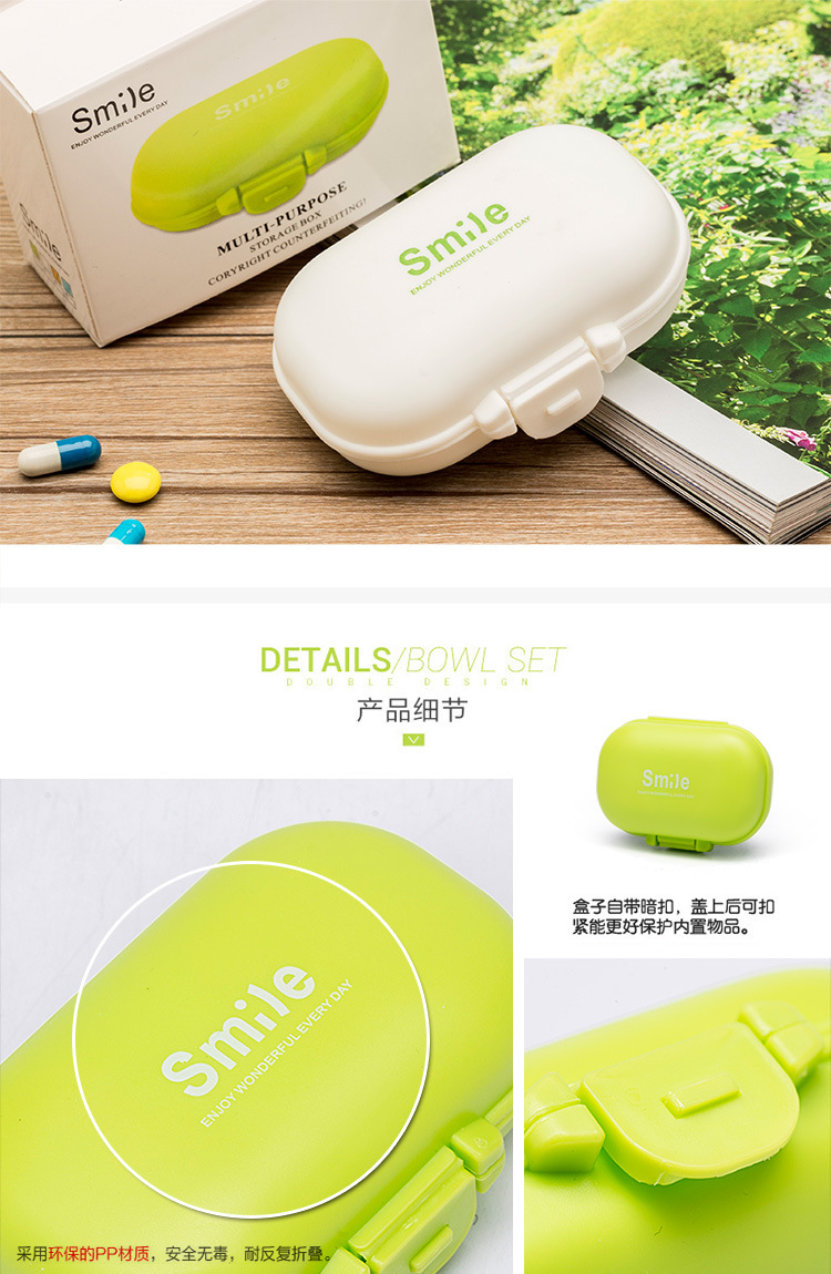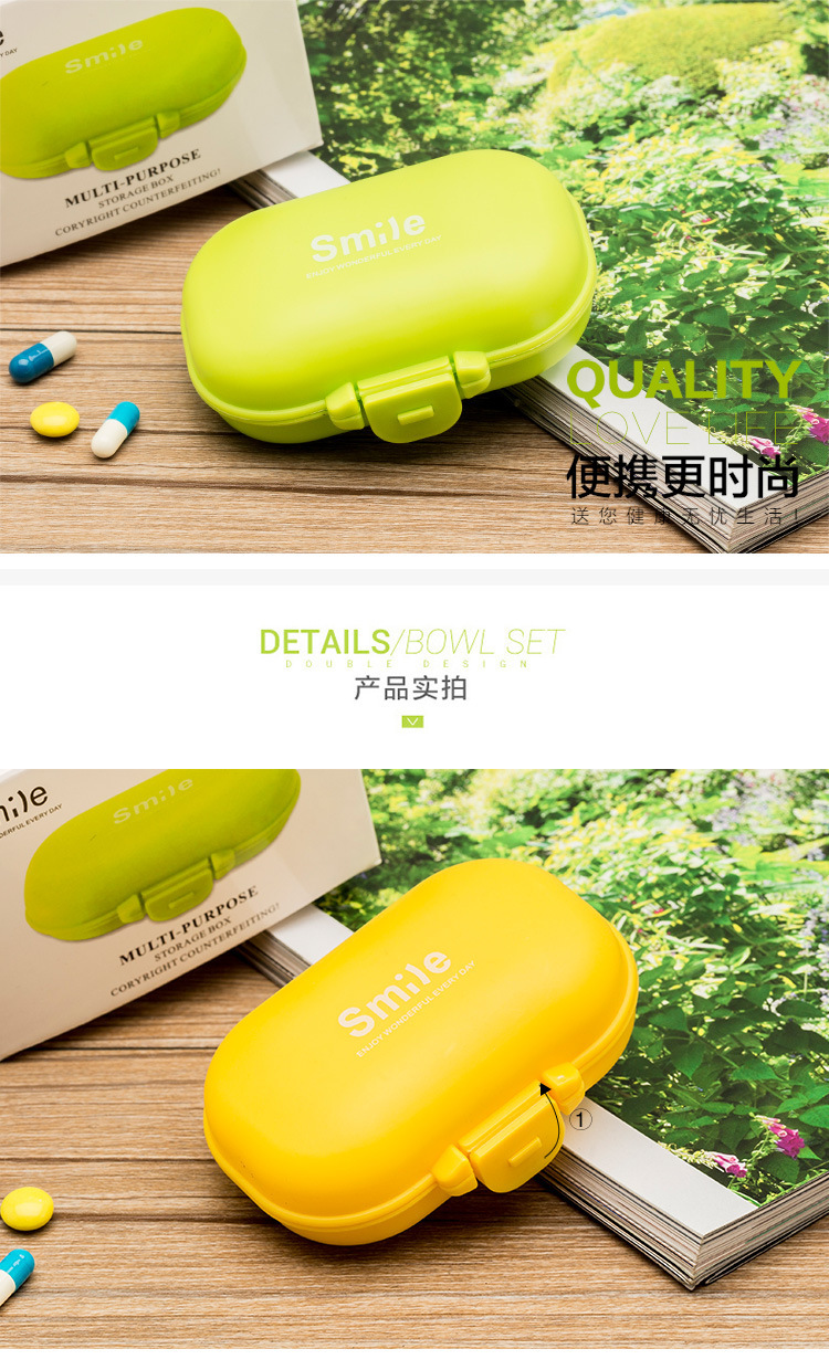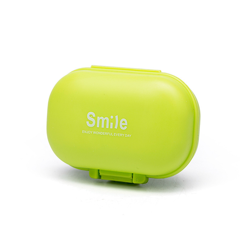 Smile Macaron 4 구획 알약 상자 휴대용 다중 구획 알약 상자 1 주 밀봉 된 알약 상자